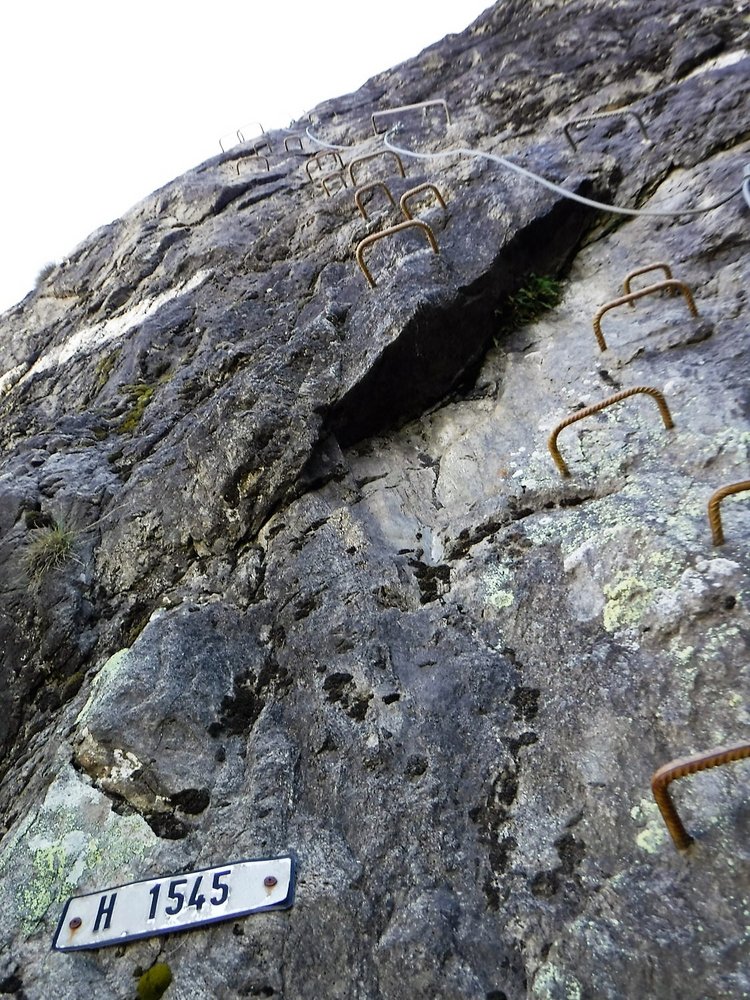 Kein typischer französischer Sportklettersteig mit viel Eisen im Fels. Sondern eine unspektakuläre Route, wo man viel Felskontakt für Hände und Füße hat. Nicht allzu schwer und mit Sicht ins Tal. Allerdings im unteren Abschnitt auch Sand und Bewuchs.