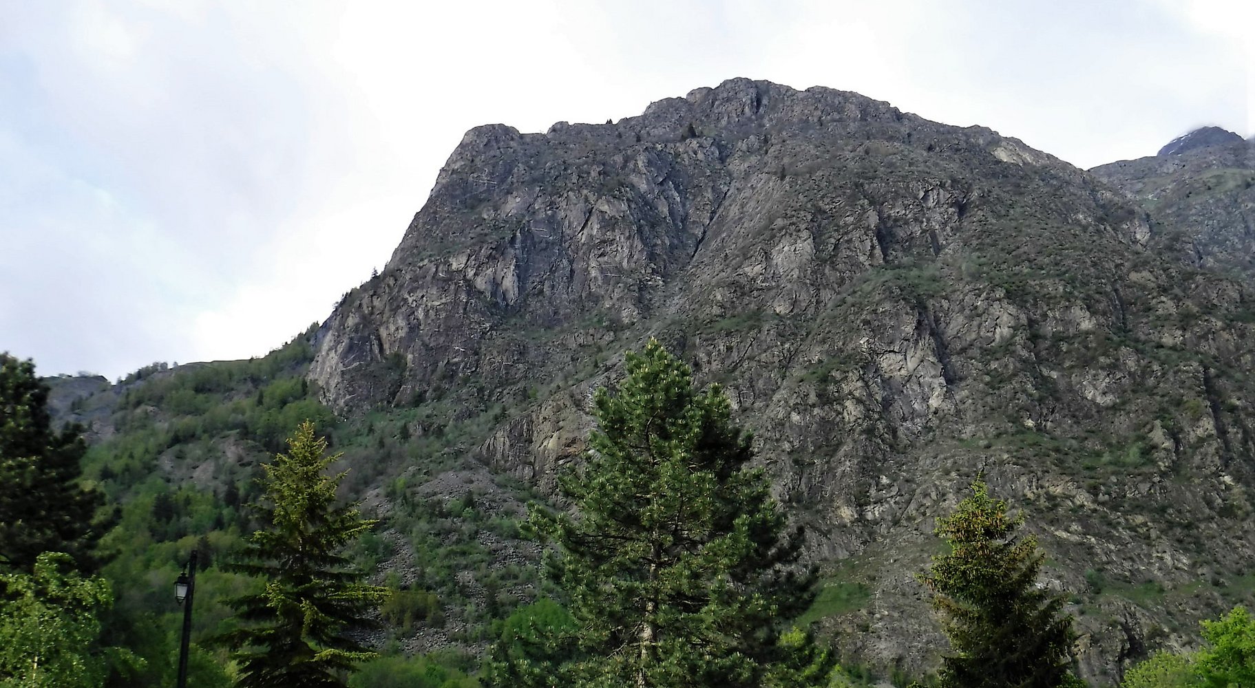 Dabei blickt man aus westlicher Perspektive auf die Klettersteig-Route. Nach 30 min. gelangt man zum Wegweiser von Tête du Fartail (1190 m), wo links der Wanderweg nach Venosc abzweigt mit dem Zustieg zum Klettersteig. Wer mit dem Auto die Kehren reiche Straße zum Retorten-Ort Les deux-Alpes hoch gefahren ist, wird diesen Weg südwärts als Zustieg zum KS benutzen. Geradeaus läuft man 10 min. weiter zur Kapelle du Calvaire. Kurz danach kreuzt man das Sträßchen Chemin de l’Alpe. Beim Wegweiser Croix de la Ville (1096 m) läuft man geradeaus eine Gasse südwärts hinab, an einem Brunnen rechts vorbei Richtung sichtbare Kirche (1024 m). Die Glocke der Église Saint-Pierre de Vensoc stammt aus dem Jahr 1622. Im 20. Jahrhundert wurde die Kirche vollständig restauriert. Die erste Kapelle stand dort bereits im 9. Jhd. Nach der Kirche trifft man dann auf den Chemin du Moulin. Weiter zurück zum Parkplatz an der Talstation der Gondelseilbahn wie aufgestiegen (20 min.).