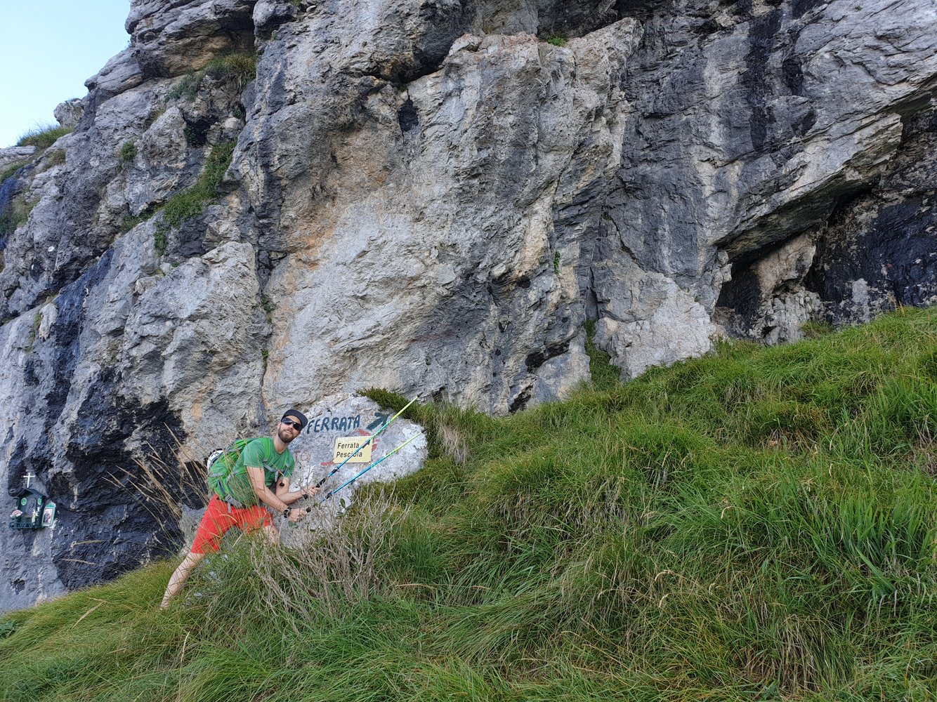 Vom "Zucco dei Campelli" am Grat entlang den Wanderweg folgend zum Einstieg des Klettersteiges "Sentiero attr. Mario Minonzio", C/D.