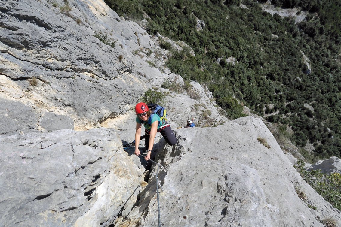 Wegen des mediterranen Klimas ist dieser Steig auch im Winter durchaus machbar. Im Sommer sollte man aber die Mittagshitze meiden: die Wand liegt ab ca. 15.00 Uhr im Schatten (an heißen Tagen speichert der Fels recht lange die Energie). Bei Nässe sind die schon recht glatt polierten Platten tabu! Kletterer, die sich im ersten Steilstück schwertun, sollten auf jeden Fall über den Fluchtweg wieder absteigen! Den Steig sollte man - anders als in anderen Führern beschrieben - nicht im Abstieg begehen!