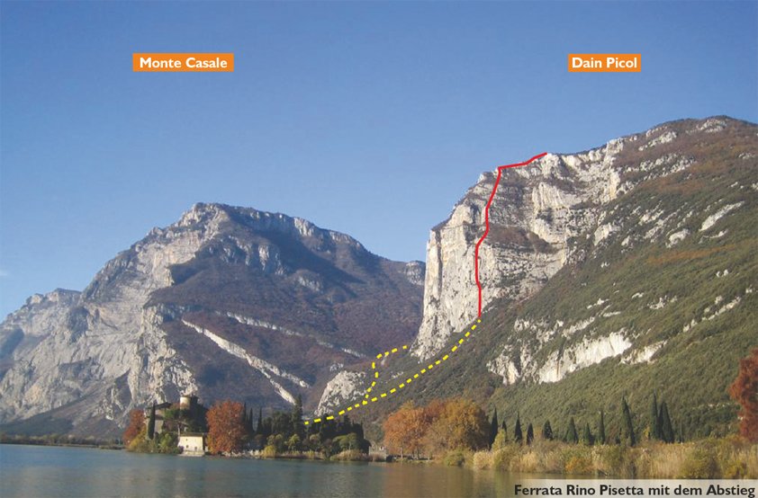 Wer sein Klettersteigkönnen unter Beweis stellen möchte, ist beim Rino Pisetta Klettersteig genau richtig. Der 1982 erbaute Klettersteig galt lange als der schwerste Klettersteig im Ostalpenraum und nimmt noch heute einen der vorderen Plätze in der Schwierigkeitsskala ein. Der teils extrem luftige und ausgesetzte Klettersteig führt die glatte Südwand des Picol Dain hinauf und ist nur mit einem Drahtseil versichert – es gibt fast keine Trittstifte. Die sehr schöne und vorbildlich angelegte Route bietet neben dem Vertikal-Erlebnis auch wunderbare Ausblicke auf das Sarcatal und den malerischen Lago di Toblino.