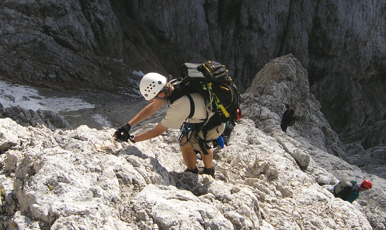 Klettersteig-Set, Klettersteighandschuhe und evtl. kurzes Sicherungsseil