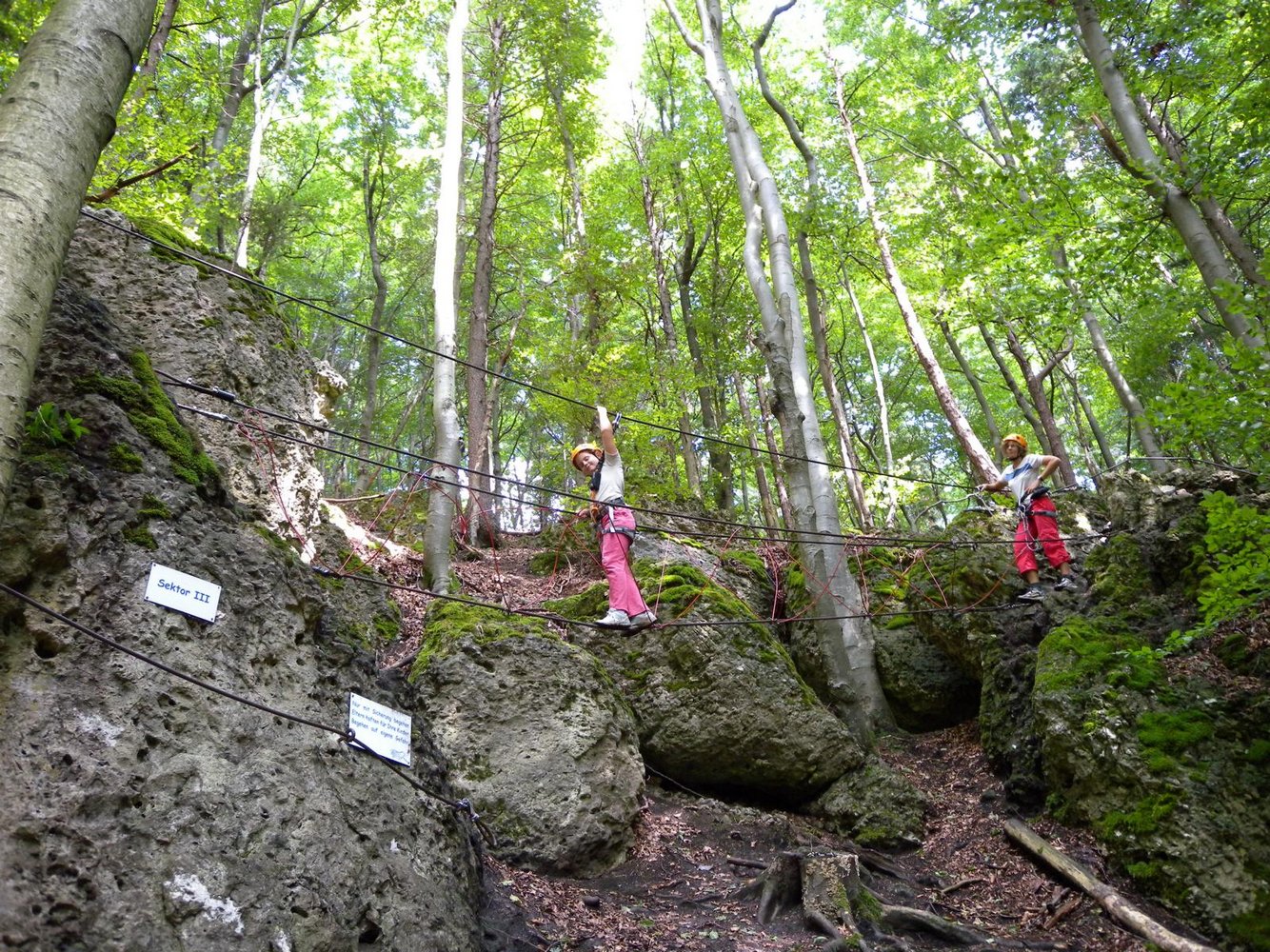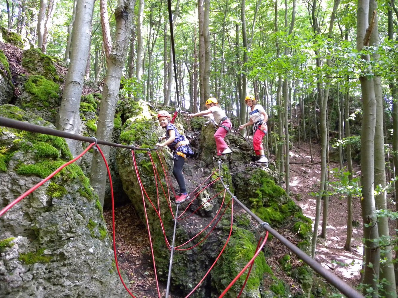 Mit der Ferrata Bambini wurde in Einstiegsnähe des Höhenglücksteiges wurde ein kleiner, aber sehr attraktiver Trainingsklettersteig gebaut! Die "Via Ferrate Bambini" (es gibt 4 Sektoren) ist, wie der Name schon erahnen lässt, auch sehr gut für Kinder geeignet. Es gibt mehrere Varianten und kleine Actionelemente um sich für den Höhenglücksteig warm zu machen.