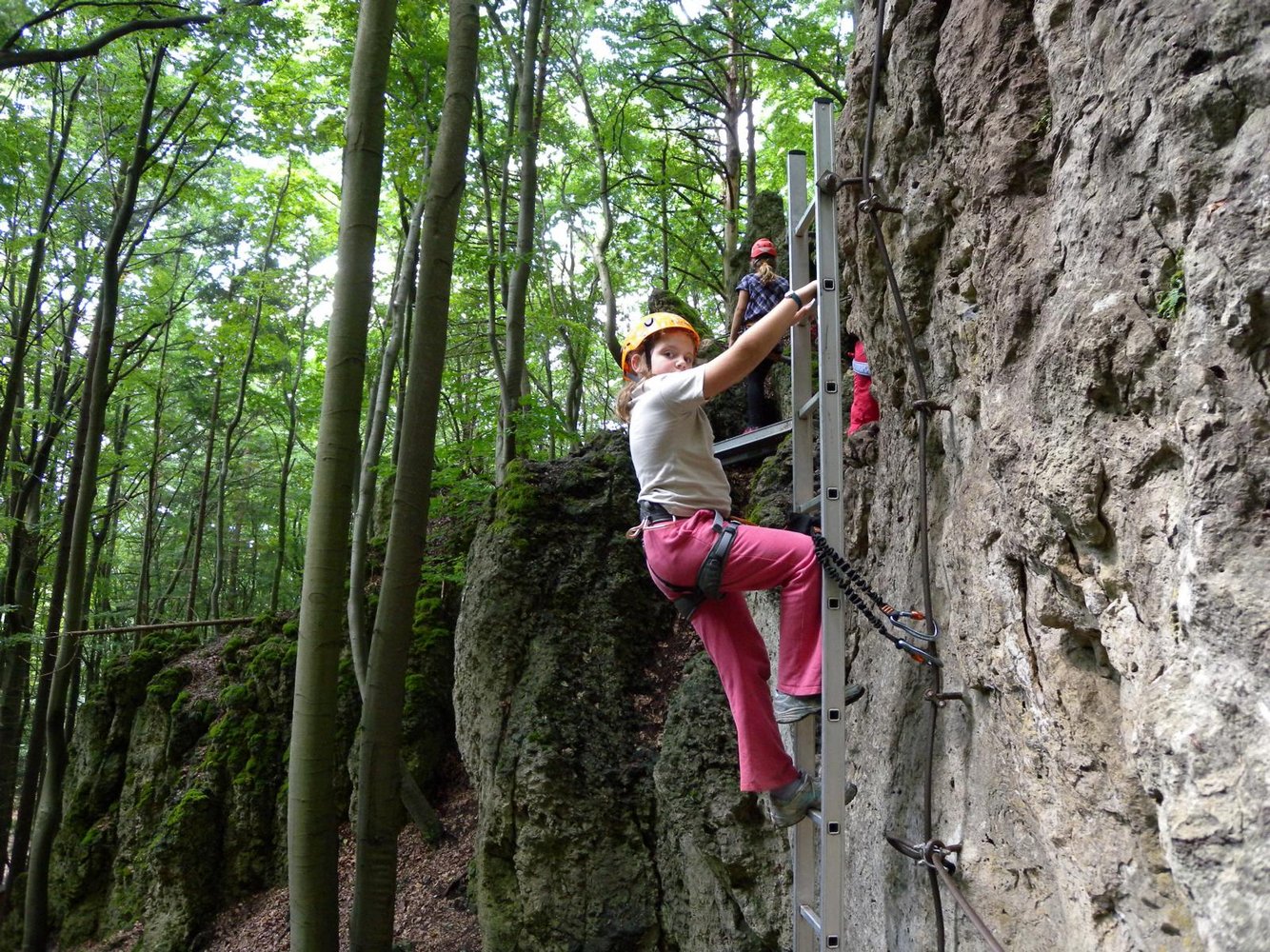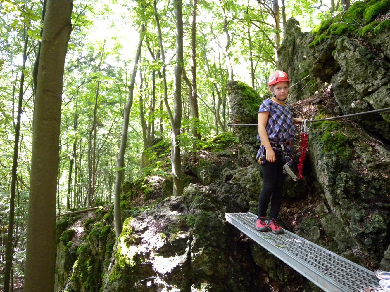 Bei Nässe und im Winter ist der Steig heikel. Wer bei der Ferrate Bambini (Kinderklettersteig) Probleme hat, sollte den Höhenglücksteig nicht machen!