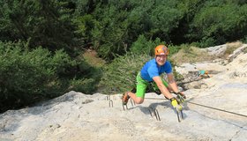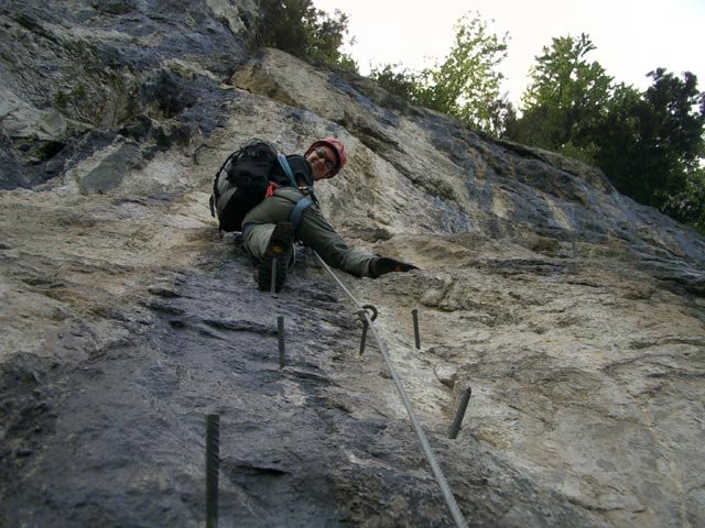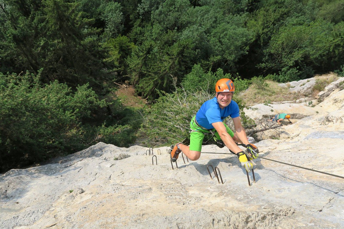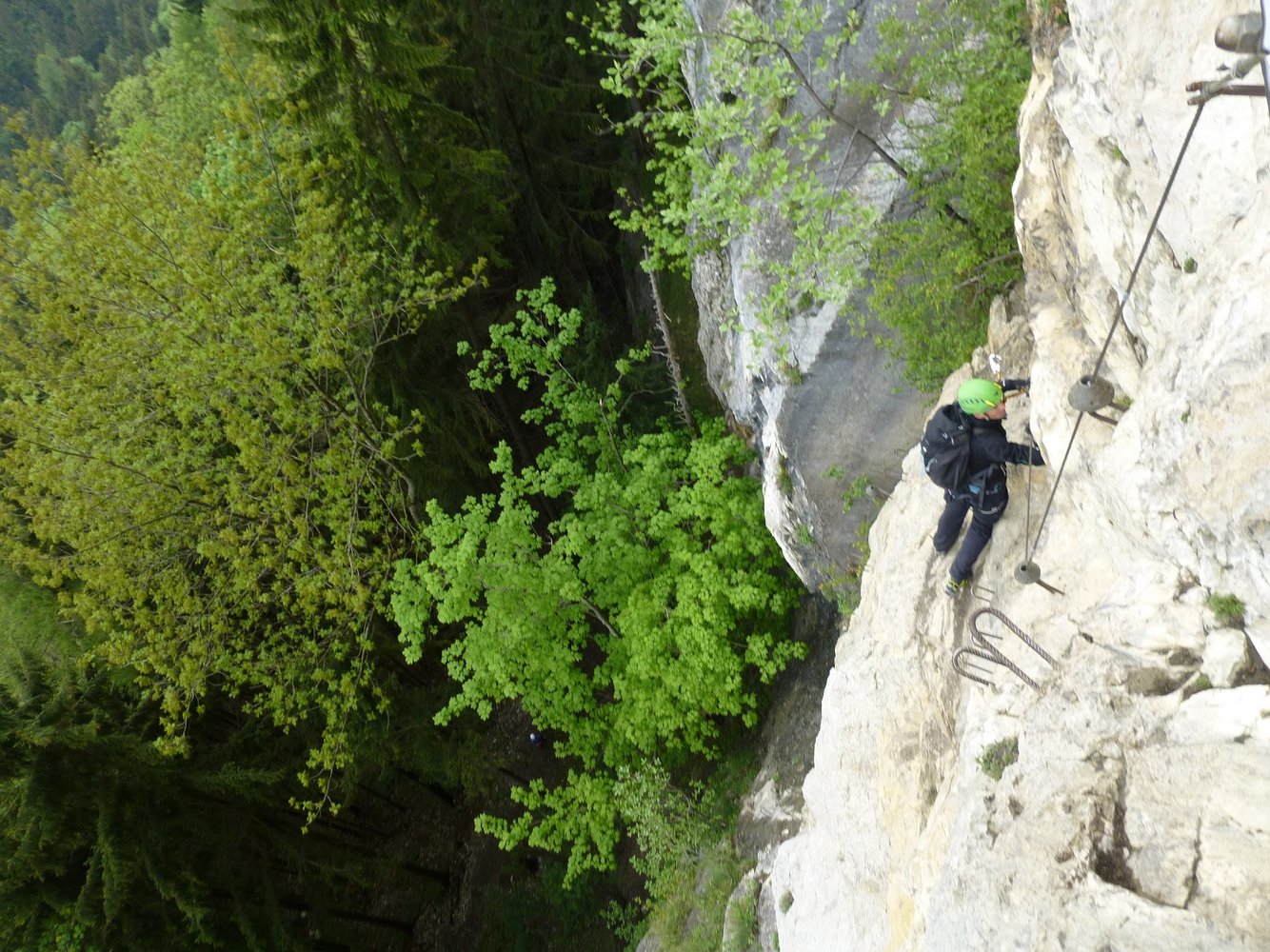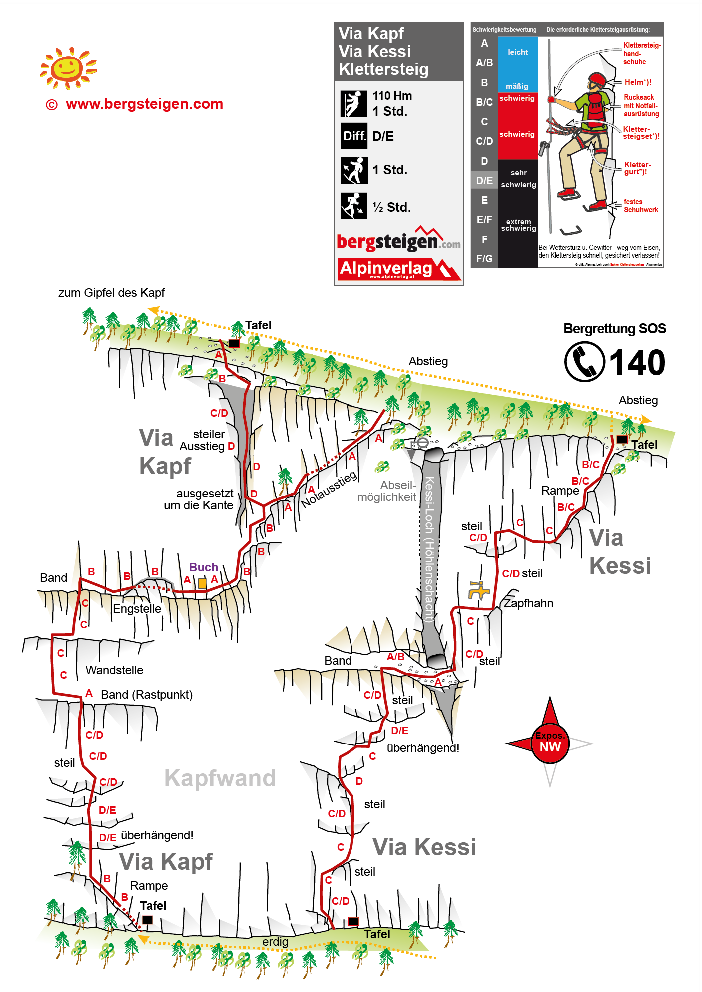Sportklettersteig der Extraklasse für Feinschmecker. Sehr luftig, sehr steil, sehr schwierig und sehr gut abgesichert - die Via Kessi hoch über dem Rheintal bietet ein vertikales Abenteuer der Extraklasse! Selten leichter als C/D, daher verlangt der sehr ausgesetzte Eisenweg sehr viel Kraft und Geschicklichkeit von den Begehern. Man kommt, trotz der geringen Steighöhe, wegen der vielen Überhänge ganz schön ins Schnaufen. Belohnt wird man mit einem grandiosen Ausblick ins Rheintal, der bei etwas Wetterglück bis weit über den Bodensee hinaus reicht.
