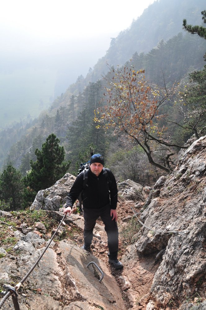 Über Steilstufen bis zu einem Durchschlupf (oft lehmig und feucht). Ab da über Felsstufen mit netter Aussicht bis zum Startplatz (am Schluss zischen Drachenflieger und Paragleiter direkt über die Köpfe!).