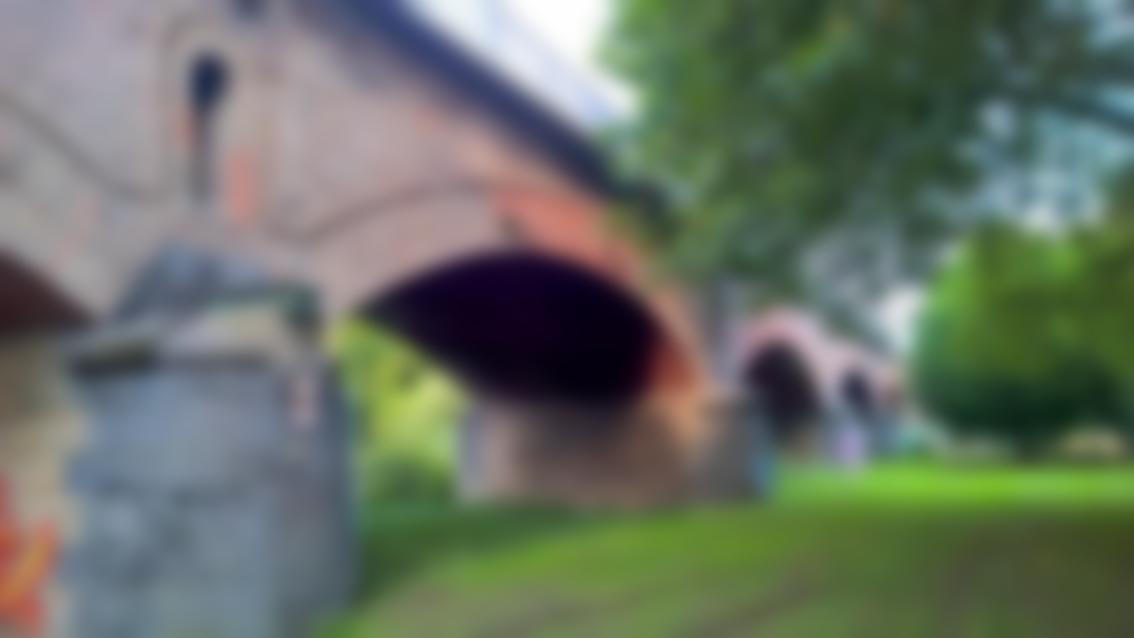 Mit der Bahn nach Mülheim und mit Öffis zum Mülheimer Schloss Broich, von dort zu Fuß zur Vorderlandbrücke. Es gibt einen Parkplatz in der Nähe - Parkhaus Stadthalle.