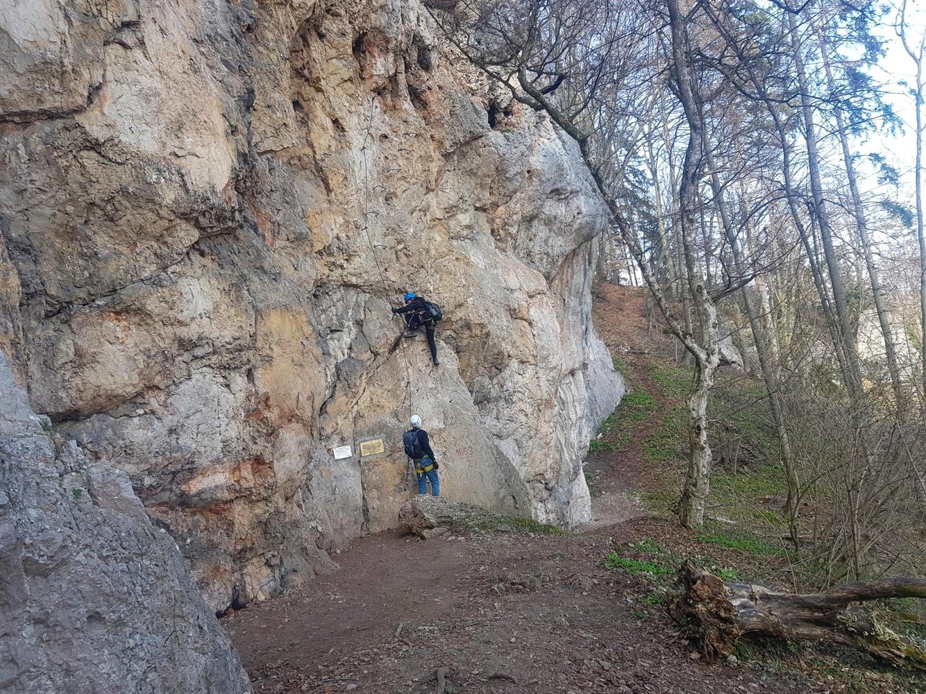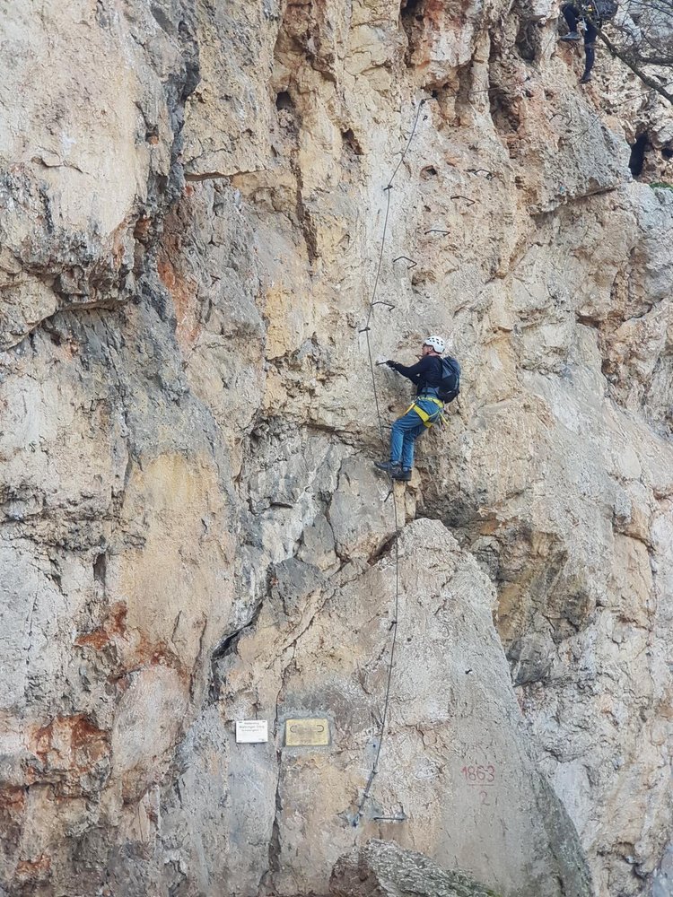 Der Klettersteig, insbesondere der Einstiegsbereich, ist durch die vielen Begehungen bereits sehr glatt!