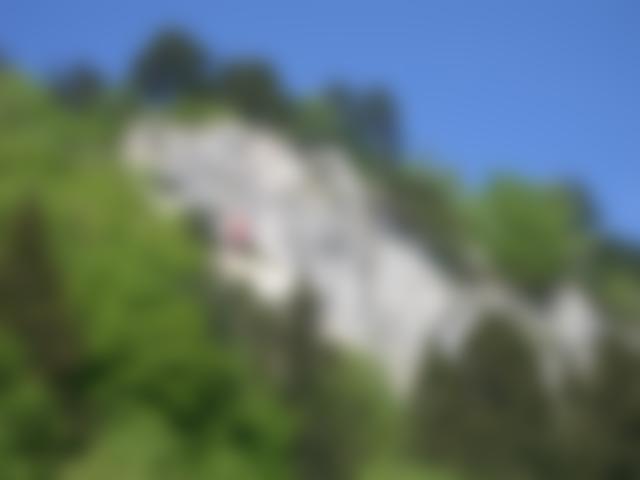 Von oben gesehen rechts vorbei an der Einhornhöhle zur Forststraße absteigen und über sie zurück zum Ausgangspunkt.