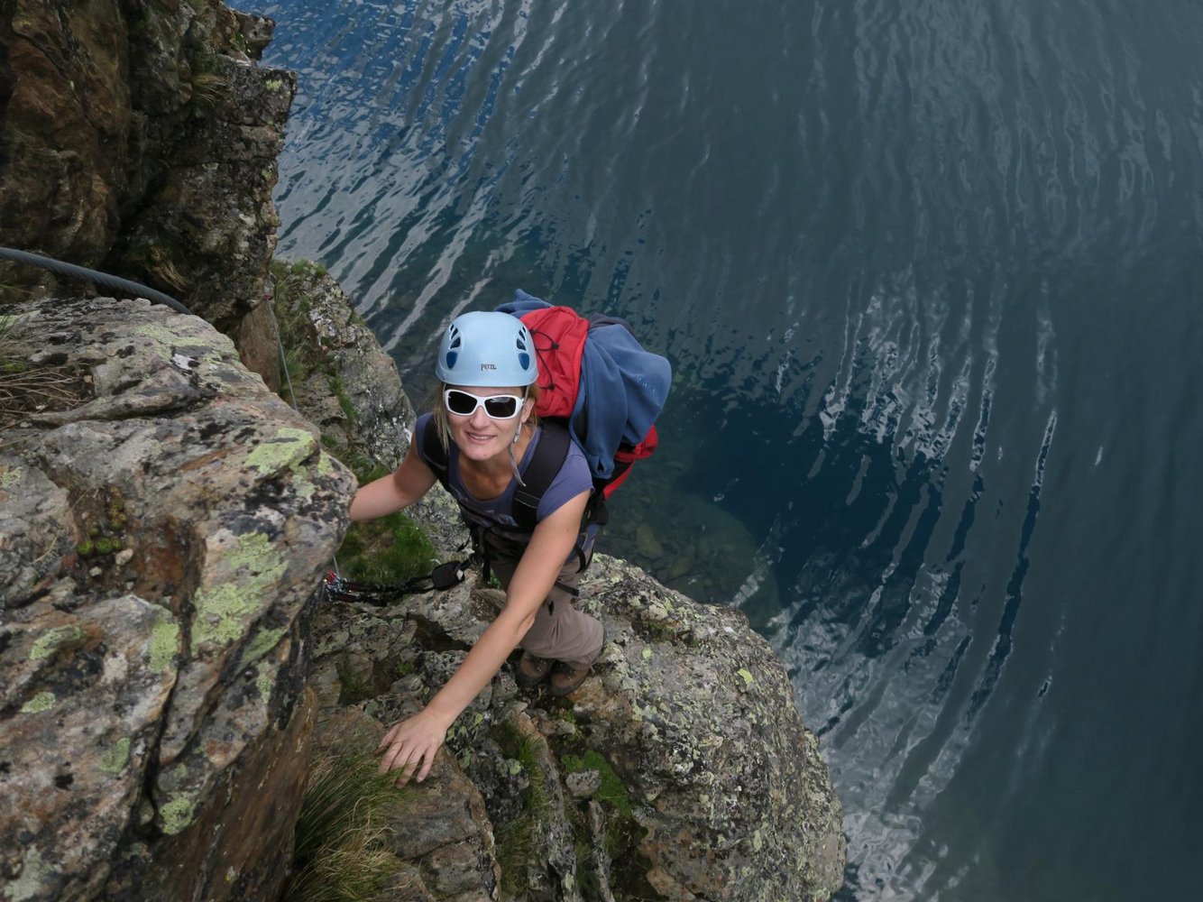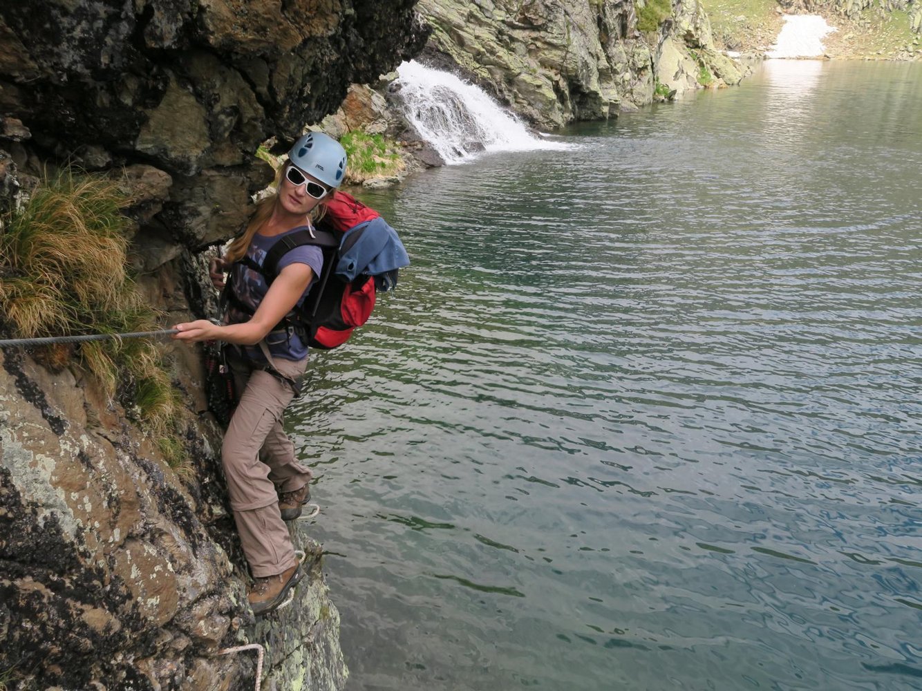 Bei Nässe ist der Klettersteig nicht zu empfehlen, da die Urgesteinsplatten sehr rutschig werden.