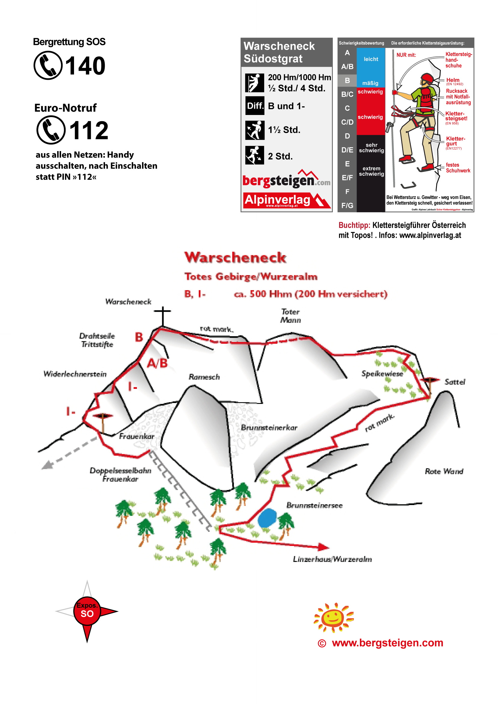 Herrlicher Gratanstieg mit schönen Ausblicken auf das Warscheneck. Die Versicherungen beschränken sich auf wenige kurze Abschnitte.