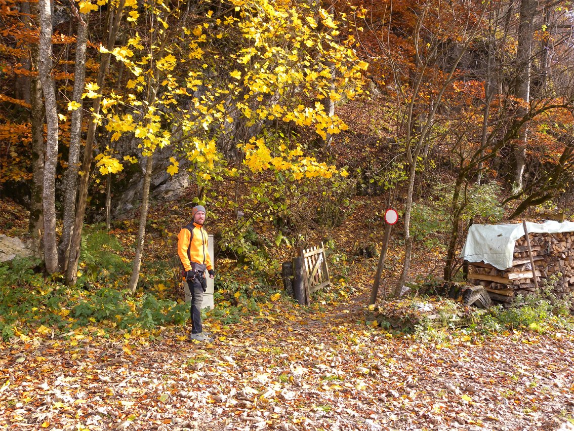 Vom Parkplatz nahe des Gasthofes Auvogl im Ort kurz südlich bis zur Asphaltstraße ins Hintertal. Dieser folgt man ein paar Meter in Richtung Hintertal, bis man am Ende der rechts der Straße liegenden Wiese auf einen Wanderweg (Blechtunnel unter der Straße) in Richtung Gasthof Frohnwies kommt. Nach wenigen Minuten erreicht man den vom Wanderweg gut sichtbaren Einstieg bei einer Tafel.