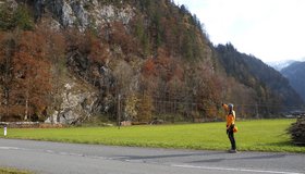 Kompl. Klettersteigausrüstung; für Schwächere ein Sicherungsseil.