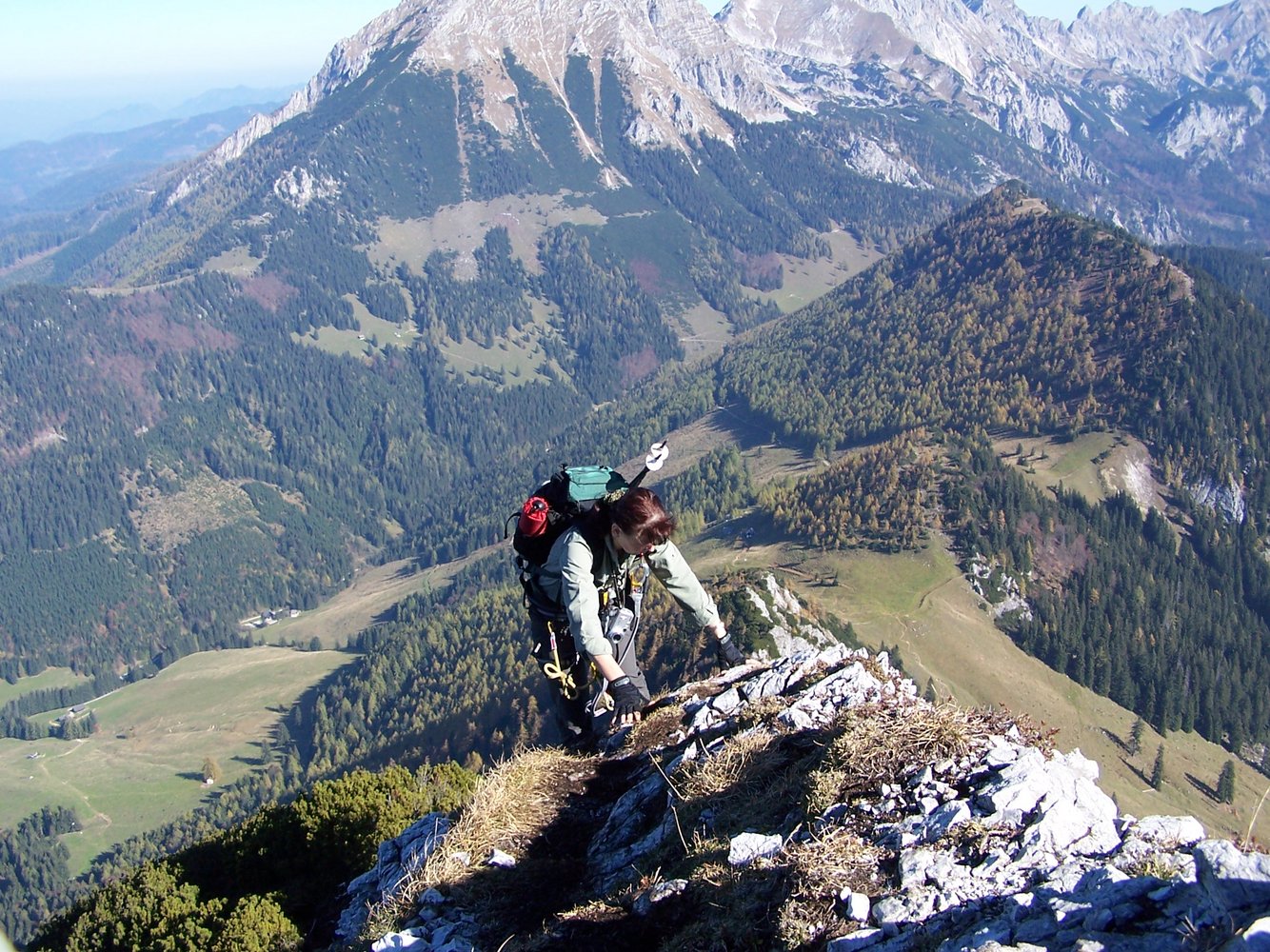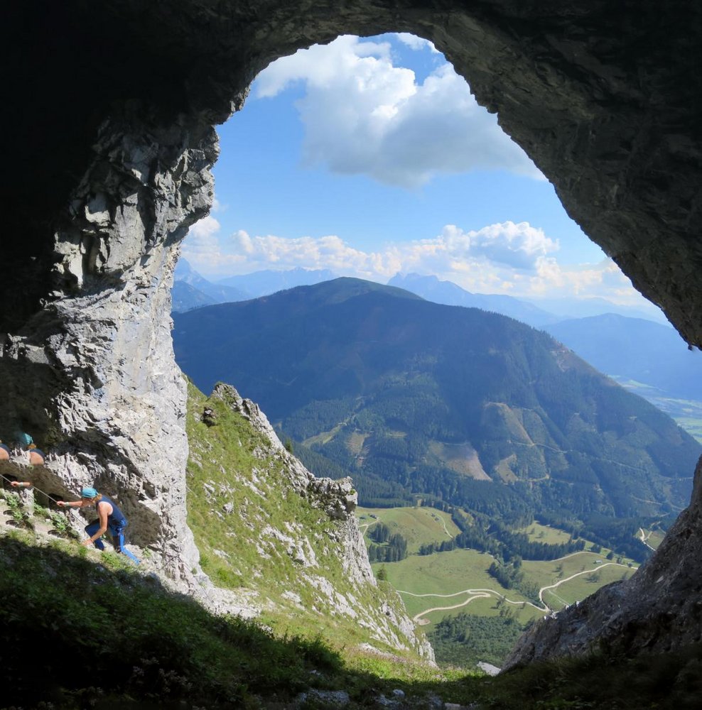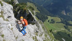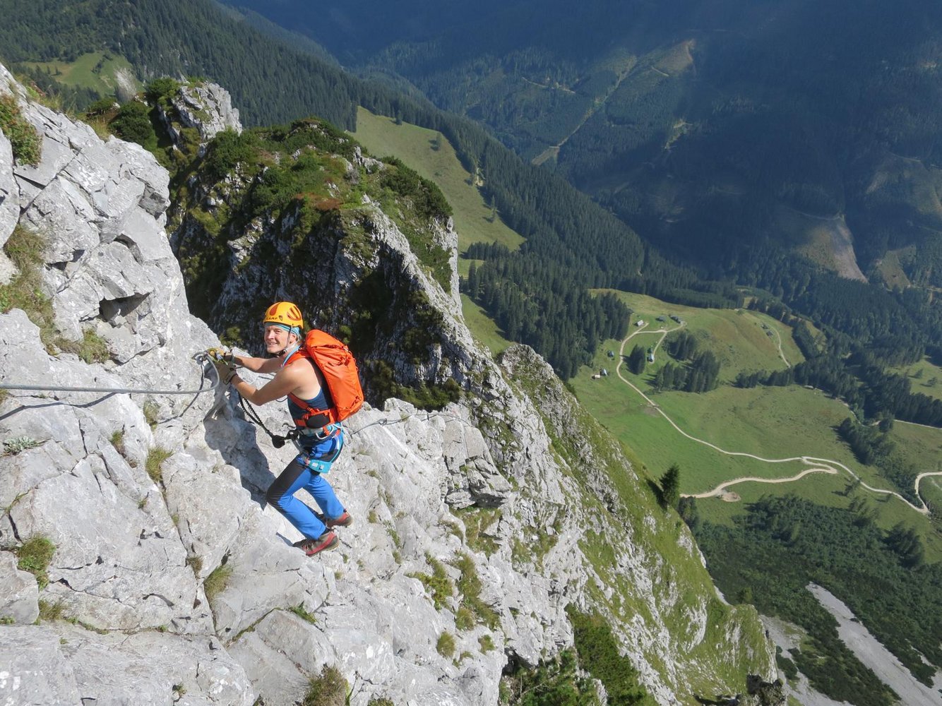Für wenig Geübte und Kinder Klettersteigausrüstung und ein kurzes Sicherungsseil - gutes Schuhwerk.