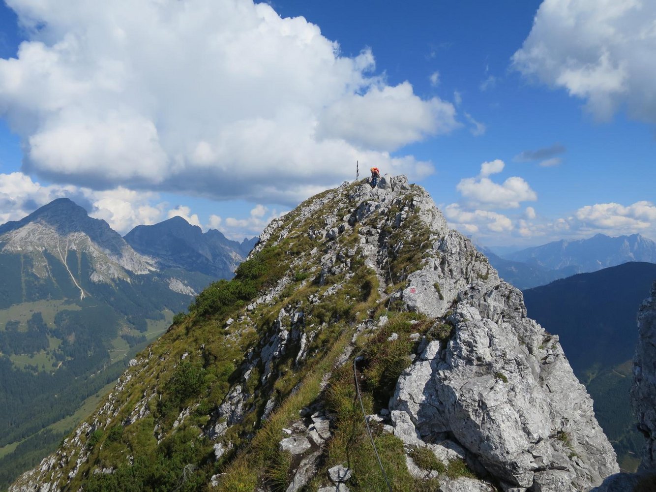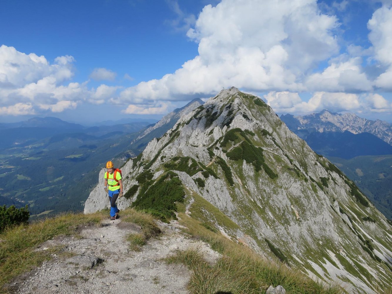 Abwechslungsreiche Überschreitung (oberösterreichisch-steirischer Grenzgang) mit luftigen Gratklettereien, vorwiegend gut markiertes Gehgelände. 2 1/2 Stunden ab Arlingsattel, mit Zugang 3 1/4, gesamt 5 bis 7 Stunden. Übergang zum Kitzstein (45 Min, I und Gehgelände) landschaftlich besonders reizend. Der mit Punkten schwach markierte Steig verläuft oft auf der Nordseite des Grats, daher extreme Vorsicht bei Nässe. 337 mH, Schwierigkeiten: zwei Stelle B/C, oft A und B und Kletterstellen bis 1-.
