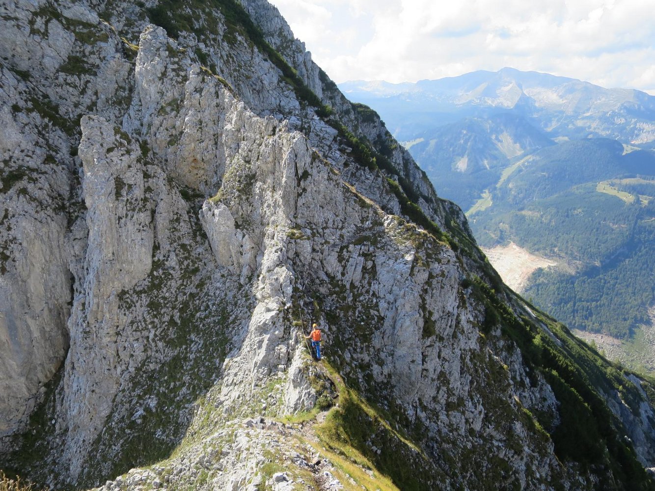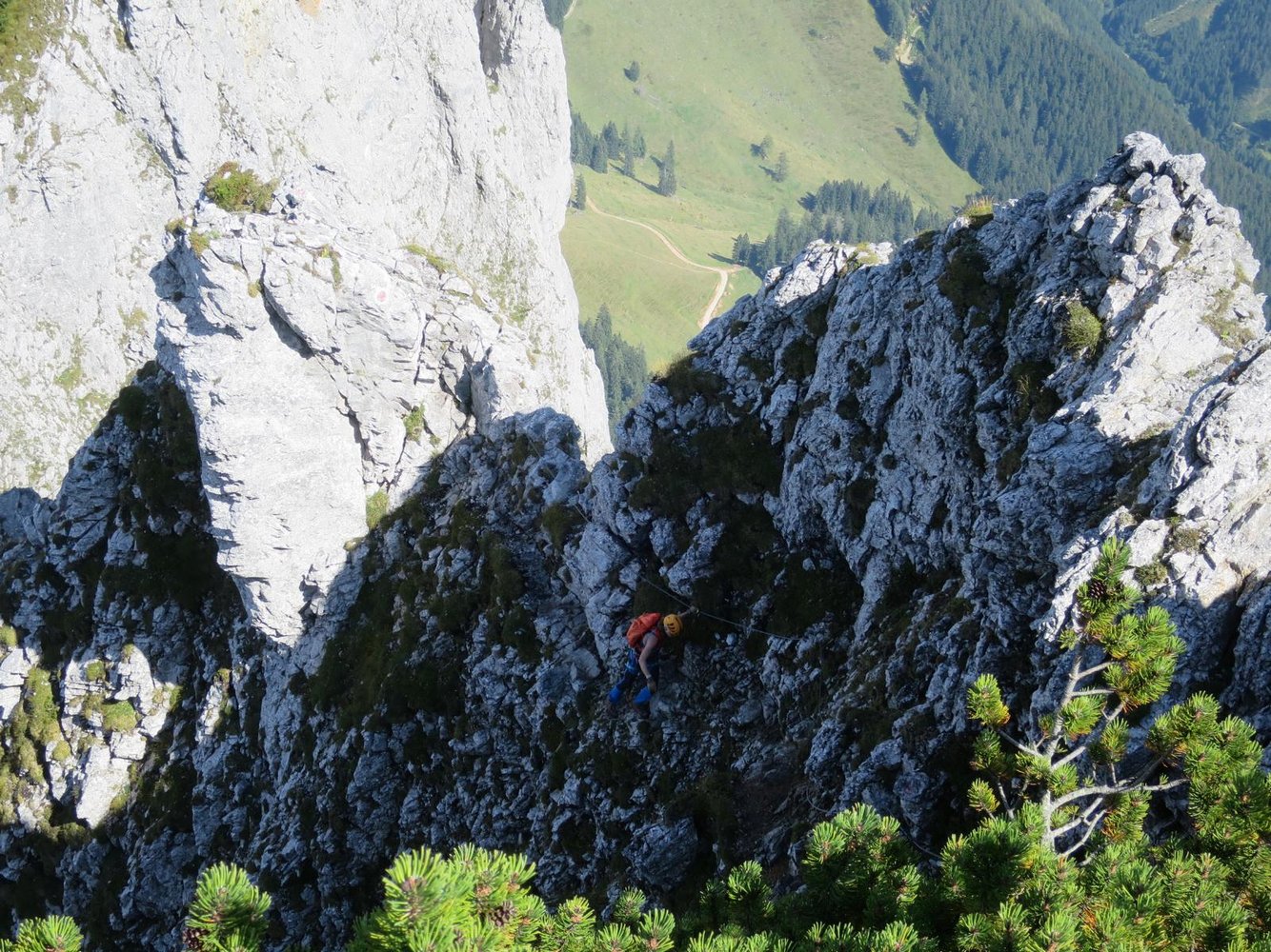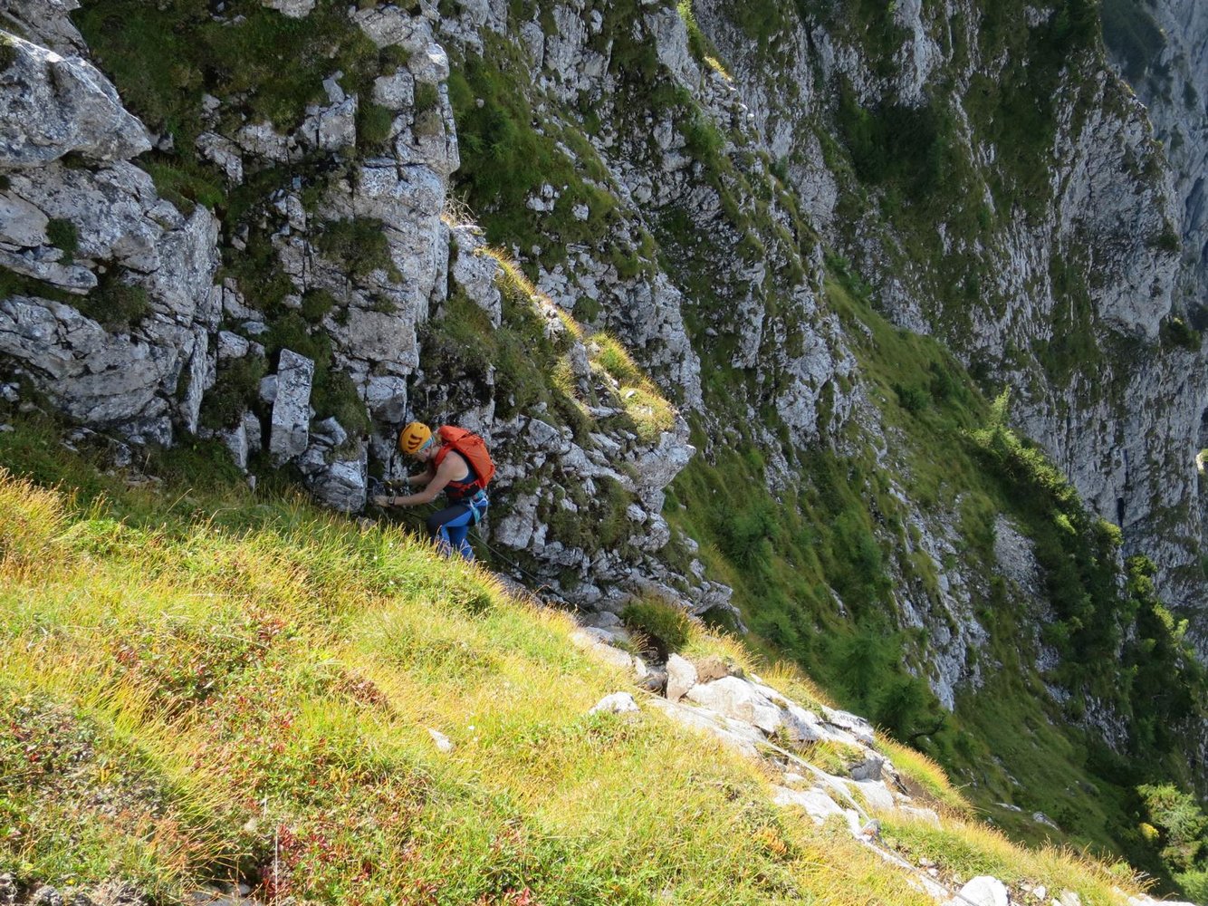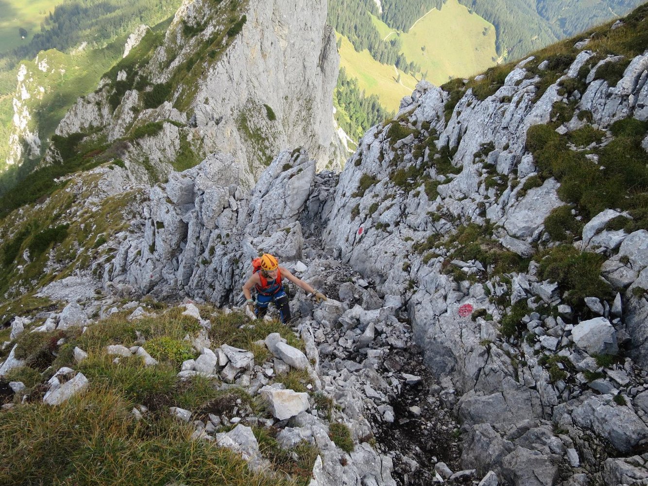 Nur teilweise versichert, dazwischen viel Gehgelände und Kletterei bis 1-