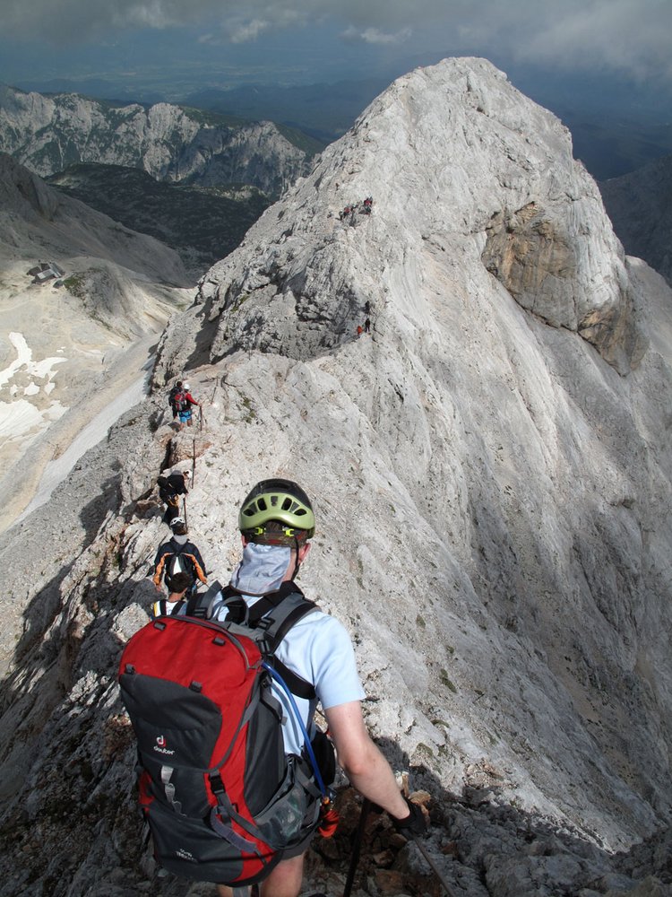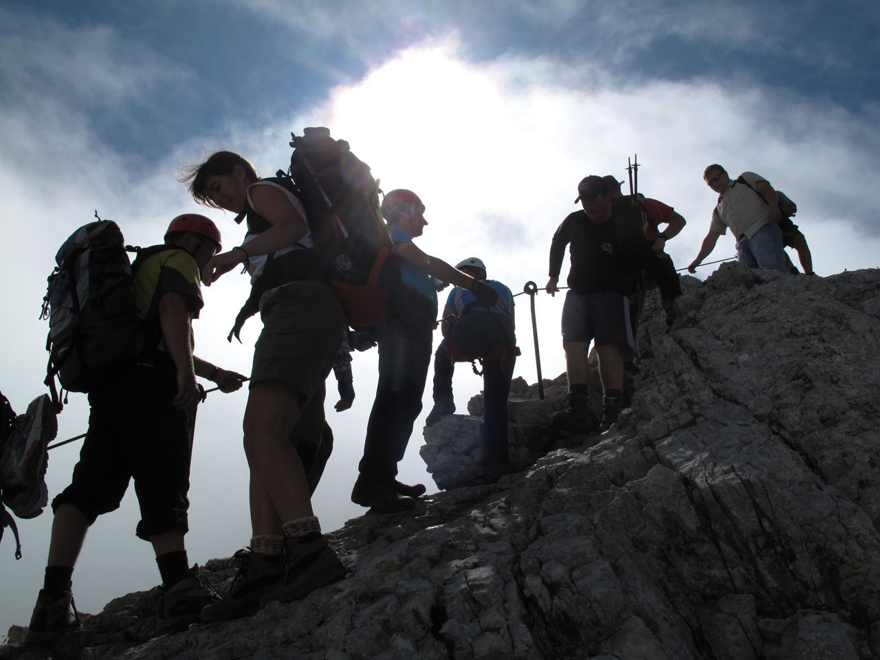 Komplette Klettersteigausrüstung und Helm, evtl. Sicherungsseil.