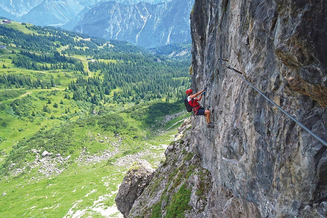 Scharf an der Grenze von Österreich und Deutschland verläuft der von der Bergschule Kleinwalsertal errichtete Zwei-Länder-Sportklettersteig (Kanzelwand Klettersteig) in den senkrechten Nordabbrüchen der Kanzelwand. Der 2-Länder-Kettersteig oder auch Kanzelwand-Klettersteig zeichnet sich durch große Ausgesetztheit und anhaltende Schwierigkeiten aus. Der Höhepunkt bei dieser fordernden Steiganlage ist eine Seilbrücke im oberen Abschnitt der Ferrata. Vom Gipfel hat man eine atemberaubende Sicht sowohl nach Österreich als auch nach Deutschland. Ausdauertiger können auch noch den Kanzelwand-Erlebnis-Klettersteig mit einer 26 Meter langen Burmabridge anhängen, um sich richtig auszupowern.