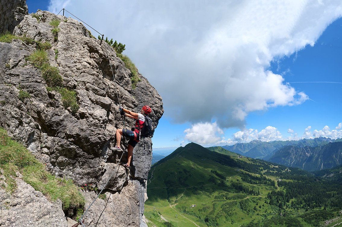 Nordseitige Ausrichtung beachten - der Schnee hält sich länger und nach Regentagen ist es oft feucht (unangenehm zu klettern). Tipp für den Abstieg: Kanzelwand-Erlebnis-Klettersteig mit einer 26 m langen Burmabridge (50 Hm; B/C; beginnt am Kanzelwand-Normalweg).