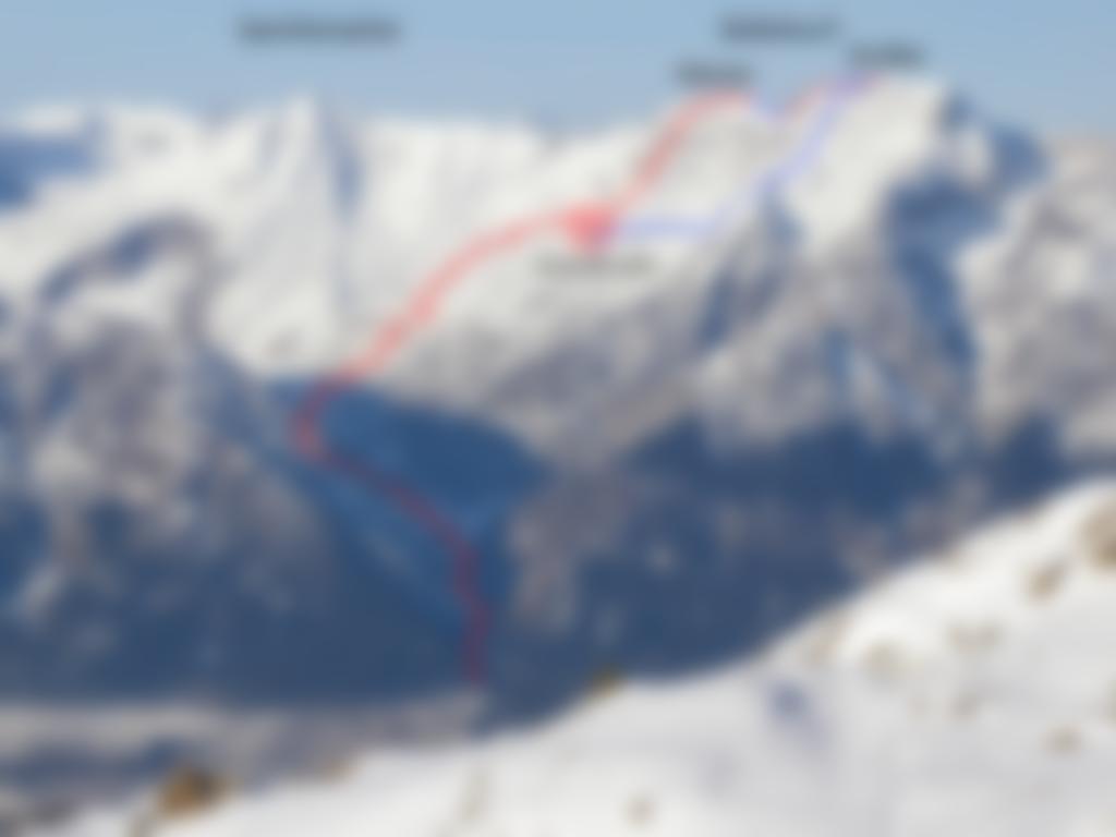 In rot Aufstieg, in blau Abfahrt - man kann natürlich auch von der Bettelwurfhütte direkt zum Großen aufsteigen.,