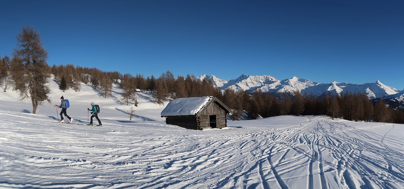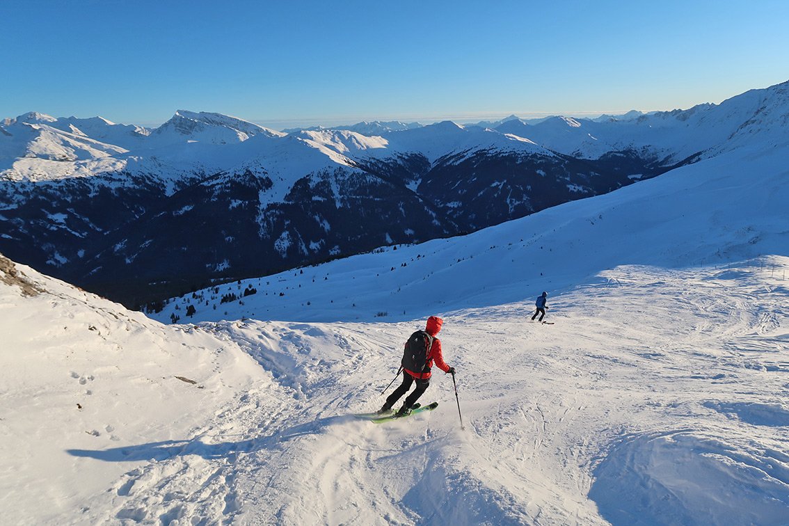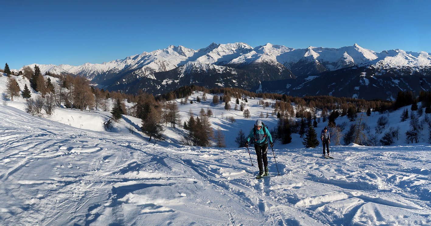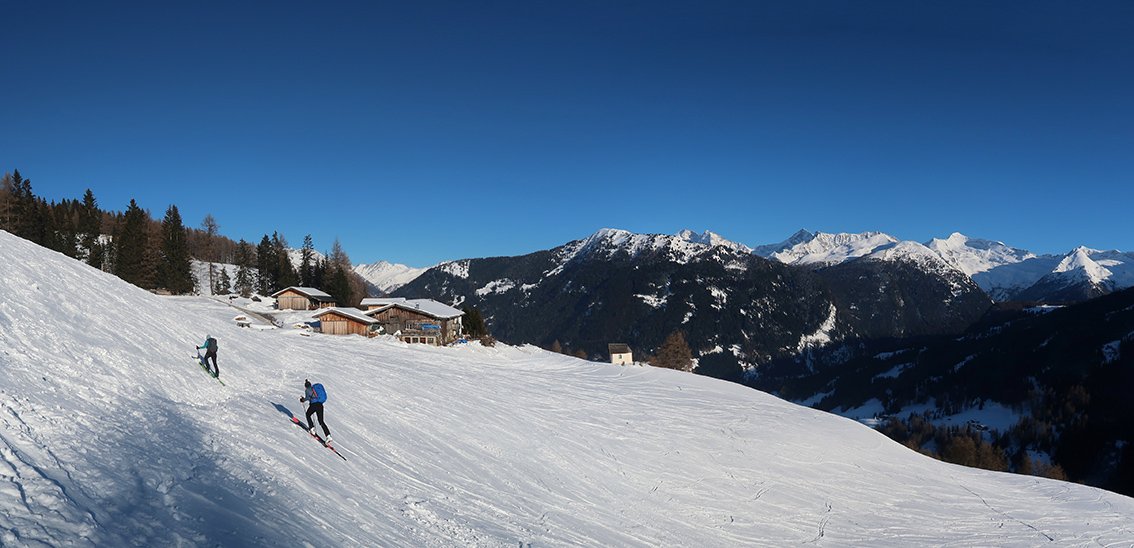 Die Skitour auf den Egger Berg ist eine beliebte und nicht ganz so überlaufene Alternative zur klassischen Skitour auf das Nösslachjoch. Unten schöne Wiesenflächen, dazwischen ein leichtes Waldstück und oben der weitläufige, baumfreie Almbereich zeichnen diese Skitour aus. Steilere Stufen sucht man bei geschickter Spurwahl vergebens und meist ist diese Skitour auch schon in diversen Varianten gespurt. Toller Ausblick auf die Zillertaler Alpen und die Brennerberge - diese Skitour ist auch für Anfänger sehr gut geeignet.