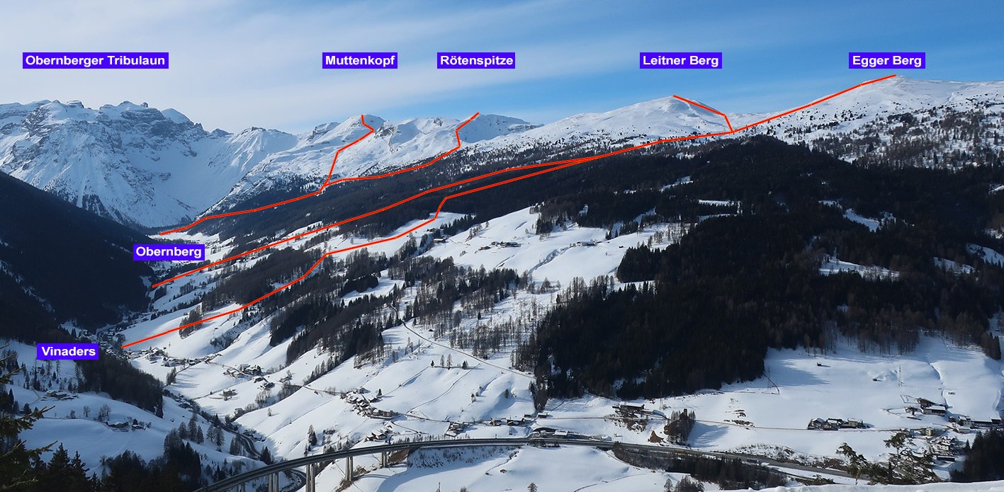 Achtung: Die Berge Leitner Berg, Egger Berg und Nösslachjoch sind sehr stark dem Wind ausgesetzt (vor allem bei Föhn)!!!