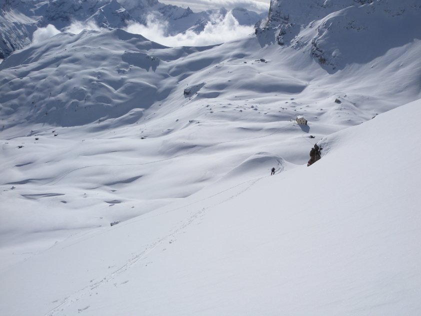 Der Mittelteil des Zufahrtsweges zum Padasterjochhaus führt durch sehr steiles Gelände - oft ist die Straße mit Schnee komplett überdeckt! Auch der Gipfelhang des Foppmandls ist steil! Sichere Schneeverhältnisse sind für diese Tour nötig!
