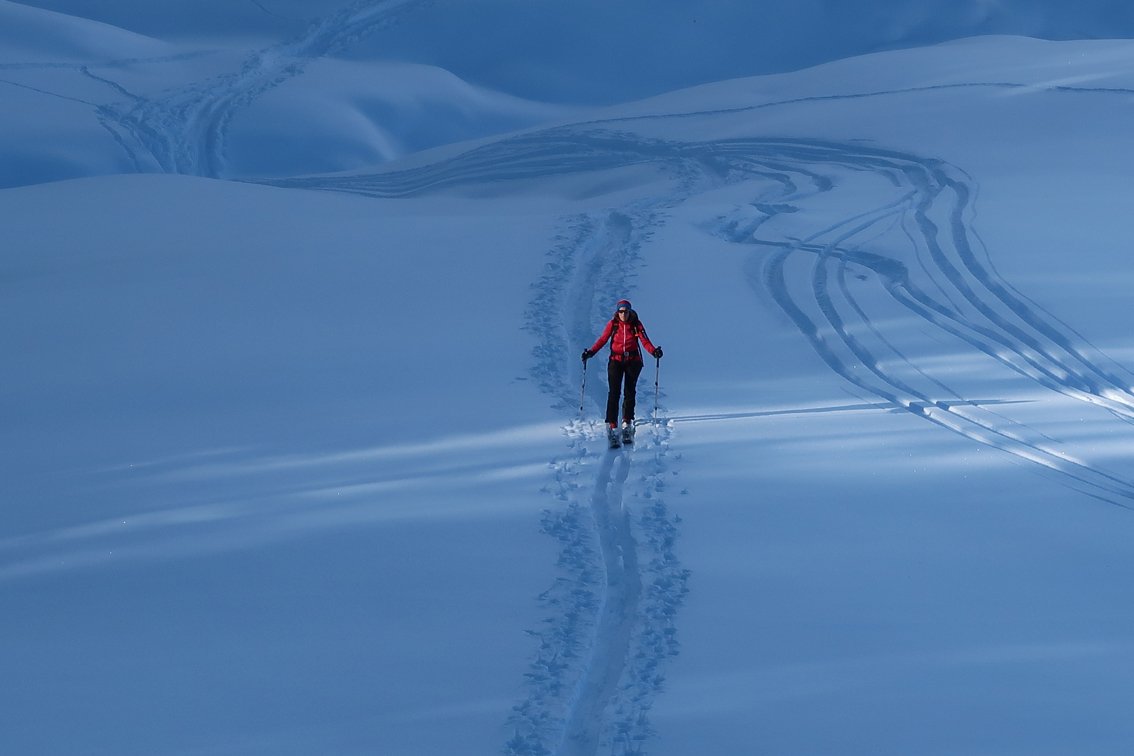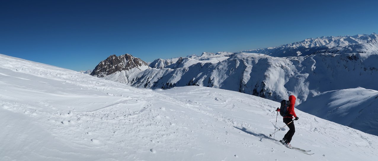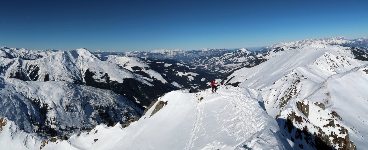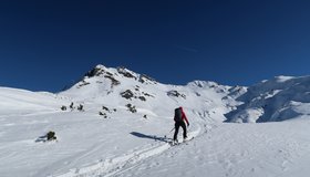 Der Gipfelhang ist sehr steil - sichere Schneeverhältnisse sind nötig.