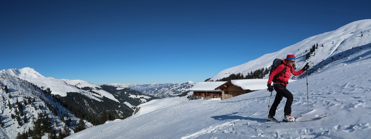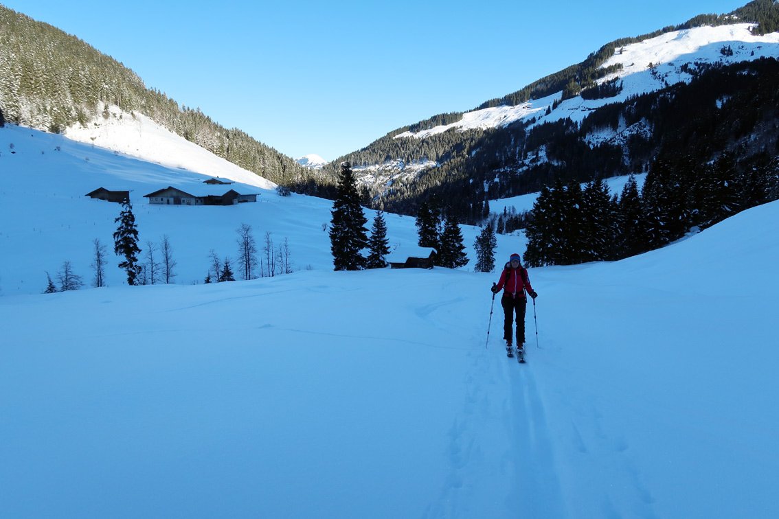 Gute, lange und nicht überlaufende Gipfelkombination im Windautal. Man steigt zuerst auf den steilen Gamsbeil, danach quert man hinüber zum ca. 40 Meter höheren Gamskogel und fährt von diesem auf der Normalroute ab. Die Tour hat alles, was eine gelungene Skitourenrunde auszeichnet. Langer Talanstieg, dann ein landschaftlich sehr schönes, nicht allzu steiles Tal und am Ende ein steiles Finale hinauf auf einen Felsspitz. Da die Abfahrt vom Gamskogel deutlich lohnender ist, steigt man noch die 346 Hm zu diesem Aussichtsgipfel auf und genießt vor der Abfahrt den tollen Blick in Richtung Großvenediger.