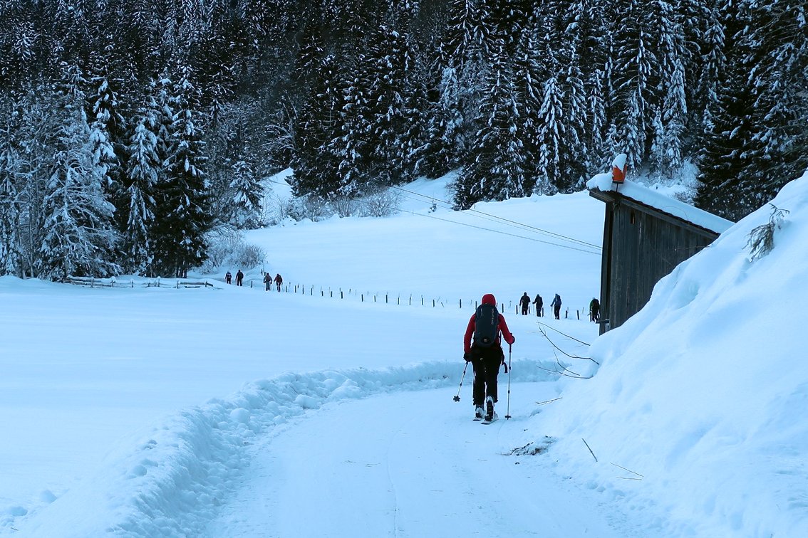 Wenn die Tour nicht gespurt ist, ist die Wegfindung zwischen Tagweidalm und Miesenbachalm nicht ganz einfach (immer entlang des Sommerweges).