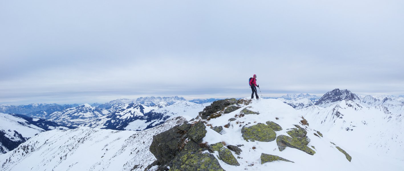 Der Gamskogel liegt eine Spur weiter hinten im Windautal und wird deshalb nicht so oft besucht wie z.B. der Steinbergstein. Die Tour ist aber lohnend, da man vom Gipfel eine perfekte Aussicht auf den dahinter frei liegenden Alpenhauptkamm hat. Bei guten Verhältnissen bietet sich die östliche Abfahrt zur Tagweidalm an.