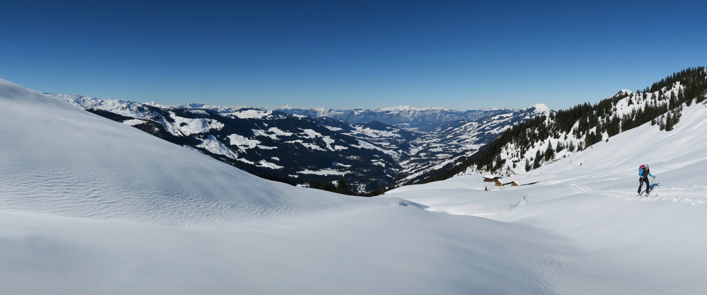 Lange und tlw. recht flache Skitour! Die Abfahrt zur Scheibenschlag Hochalm ist steil.