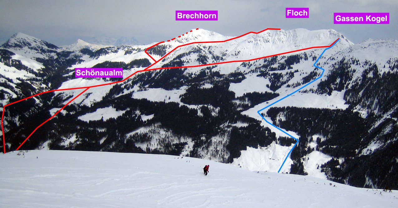 Abfahrt: Wie Austieg. Unten auf der Skipiste (welche man bei der Abzweigung Schönaualm erreicht) aber weiter bis man am Ende direkt auf den schönen Wiesen nach Rettenbach abfahren kann.
