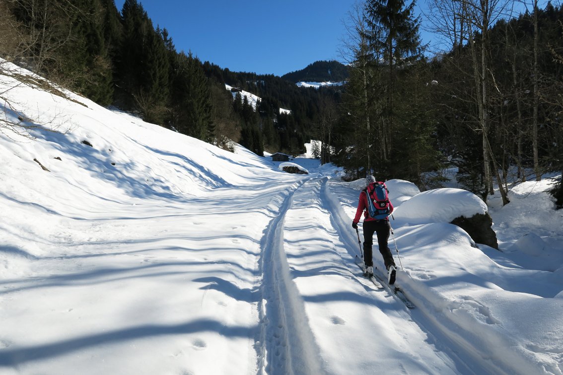 Wenn man zum Steinberghaus abfährt, sollte unten auf der Straße genug Schnee liegen (sonst muss man zu Fuß zurück nach Rettenbach gehen).