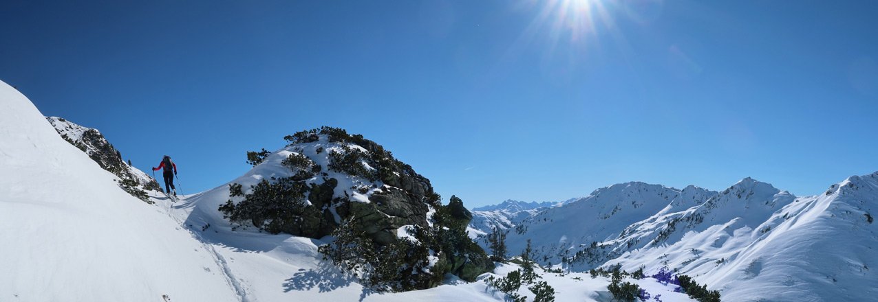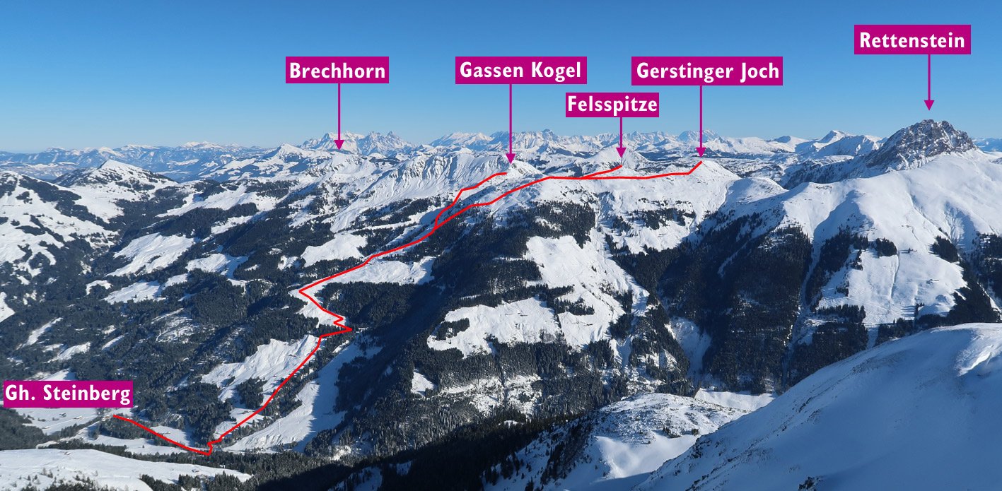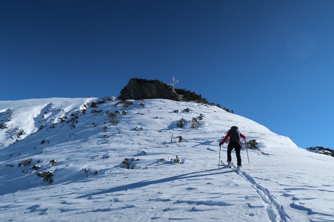 Der Aufstieg auf den Gassen Kogel wird immer beliebter, da er zu den kürzesten in der Windau zählt. Der Anstieg ist sehr abwechslungsreich und führt über perfekte Skihänge. Nach dem etwas steileren Gipfelkamm steht man beim silber funkelnden Gipfekreuz.