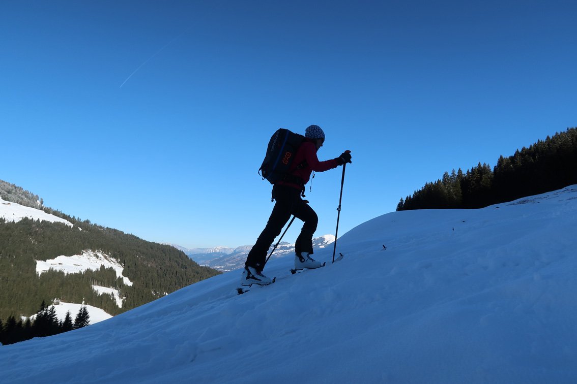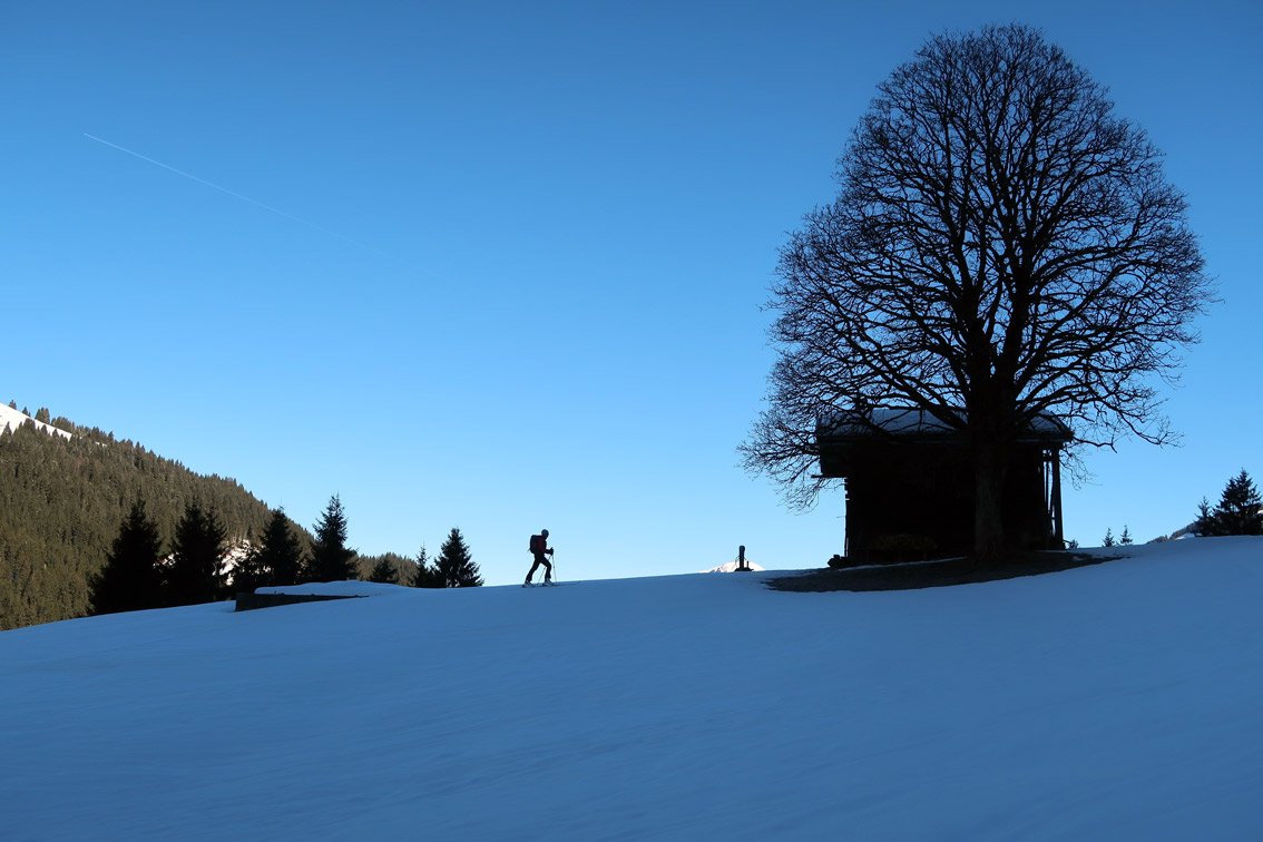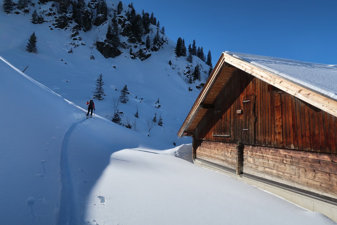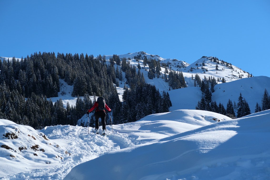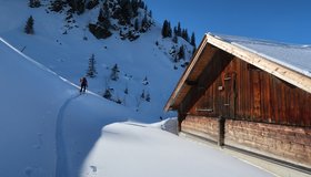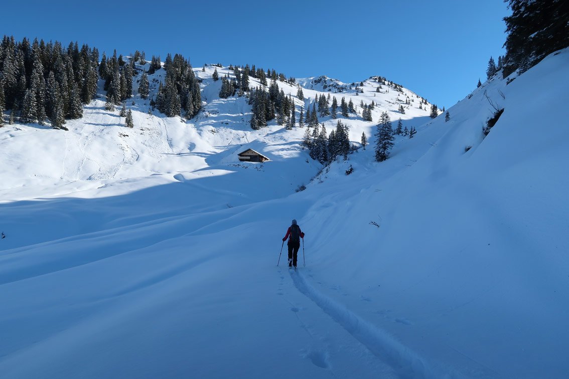 Ab der Scheibenschlag Hochalm wird das Gelände kurz etwas steiler - sichere Schneeverhältnisse nötig.