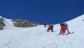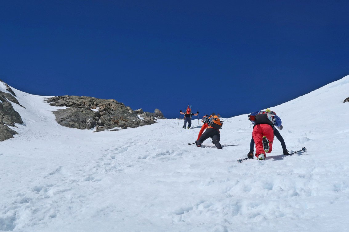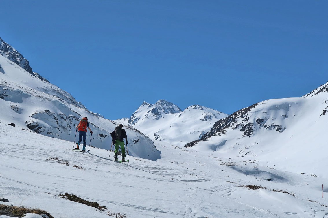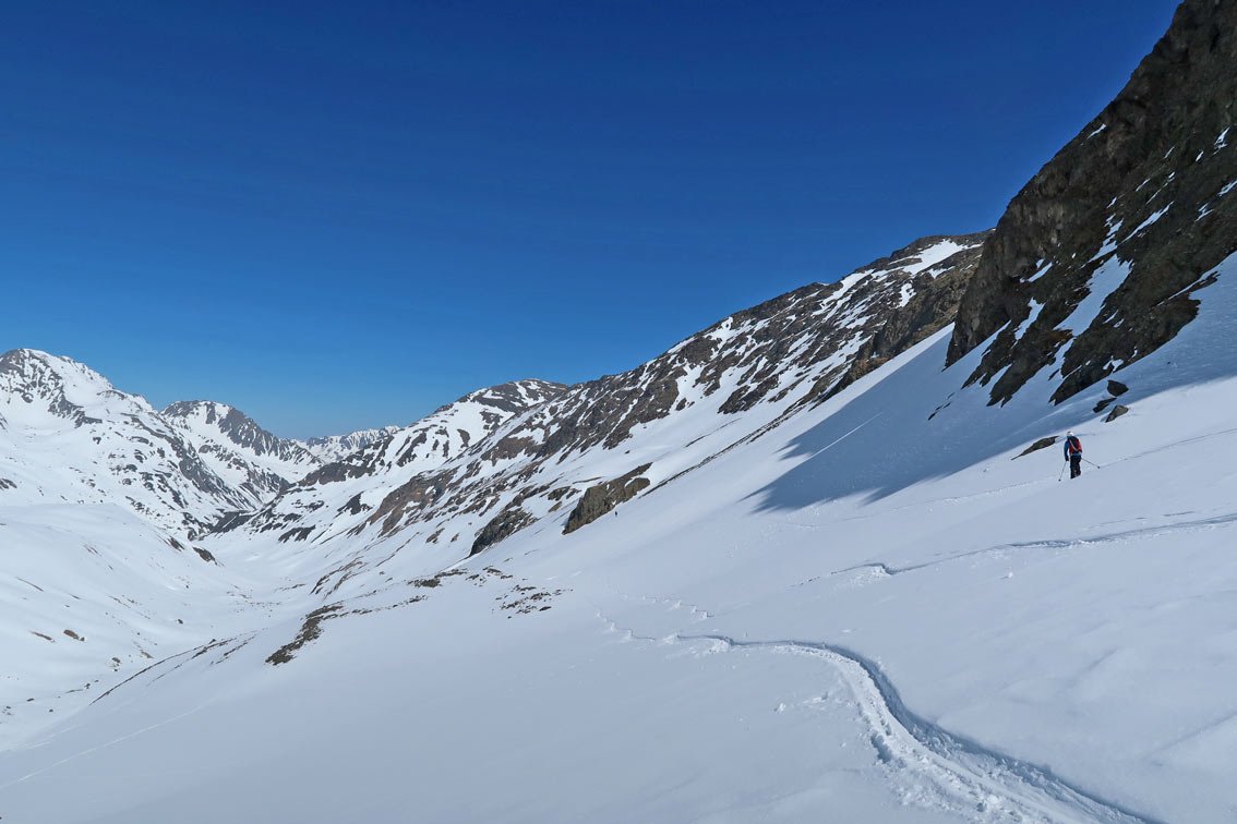 Interessanter, aber sehr langer Talanstieg in das Herz der Stubaier Alpen. Die Tour kann entweder an einem Tag vom Tal aus oder mit Nächtigung in der Neuen Pforzheimer Hütte gemacht werden. Aufgrund der Länge des Anstieges ist die Tour nicht überlaufen. Es bieten sich auch andere interessante Anstiege im Bereich der Neuen Pforzheimer Hütte an: Rosskarscharte, 3053 m, Schartlkopf, 2829 m und Lampsenspitze, 2876 m. Ein ausgefülltes Tourenwochenende auf einer urigen Skitourenhütte ist also garantiert.