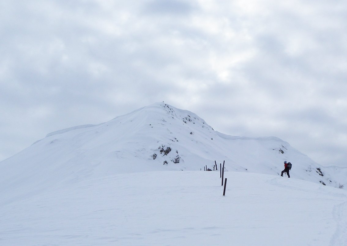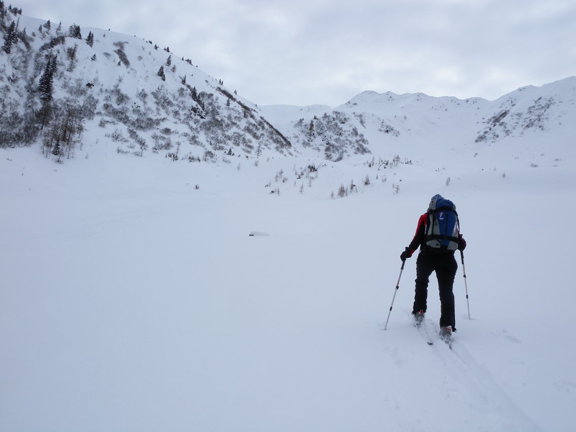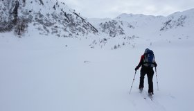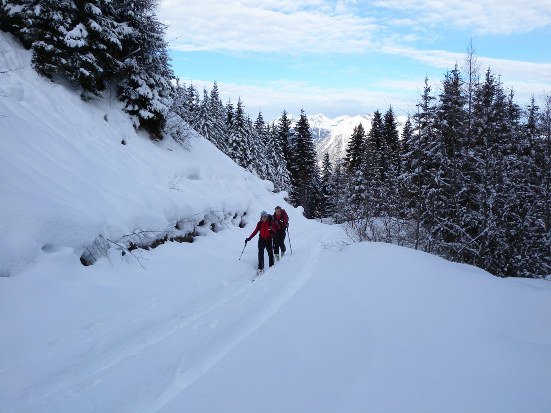 Lawinengefahr ist auf jeden Fall zu beachten, da die Hänge oben recht steil sind.