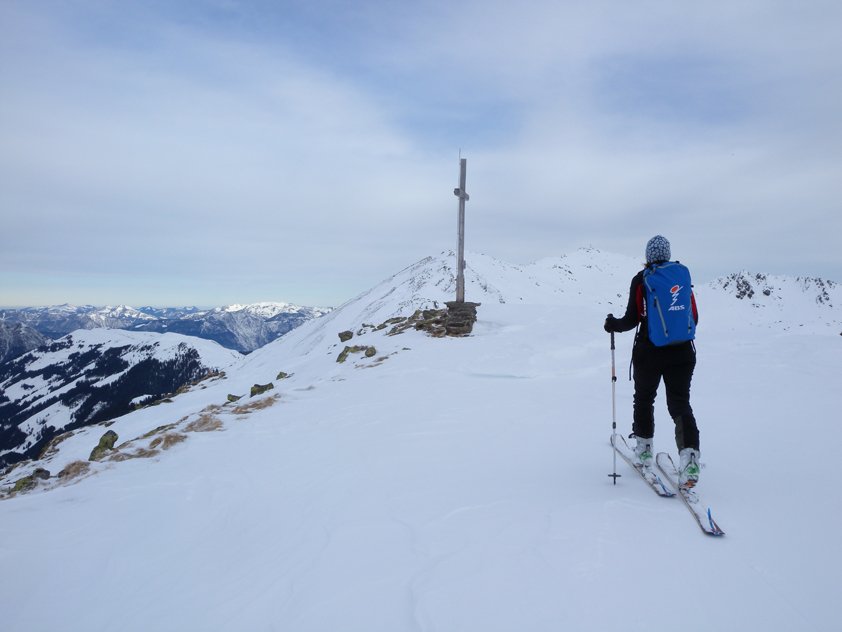 Der zwischen Sonnjoch und Großer Beil gelegene Gressenstein ist eher ein unbekanntes, aber durchaus lohnendes Tourenziel im Hochtal der Wildschönau. Bis auf die steile Passage unten am Kastensteig (die kann man zur Not links auf der Forststraße großräumig umgehen) eine einfache Skitour.