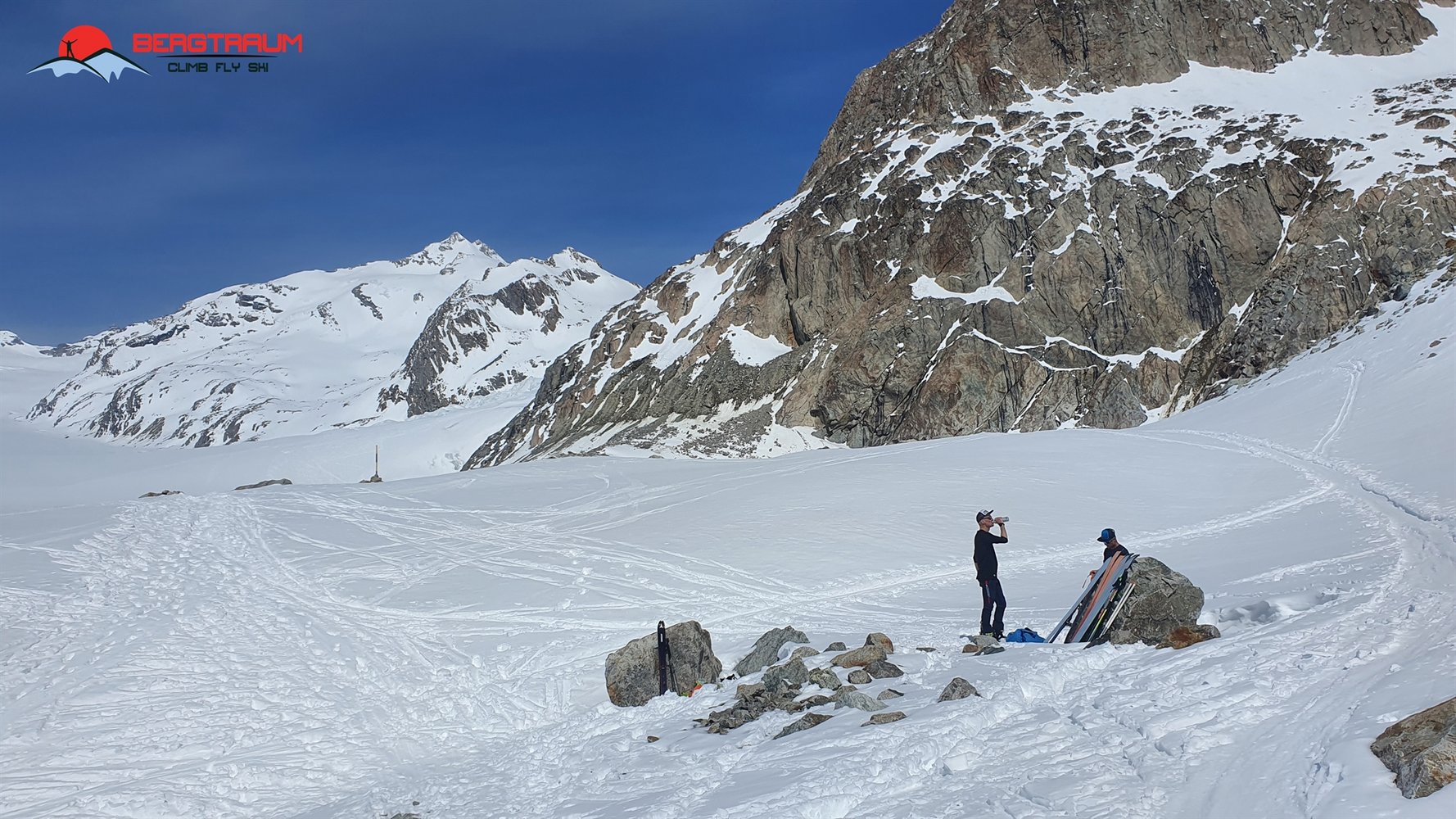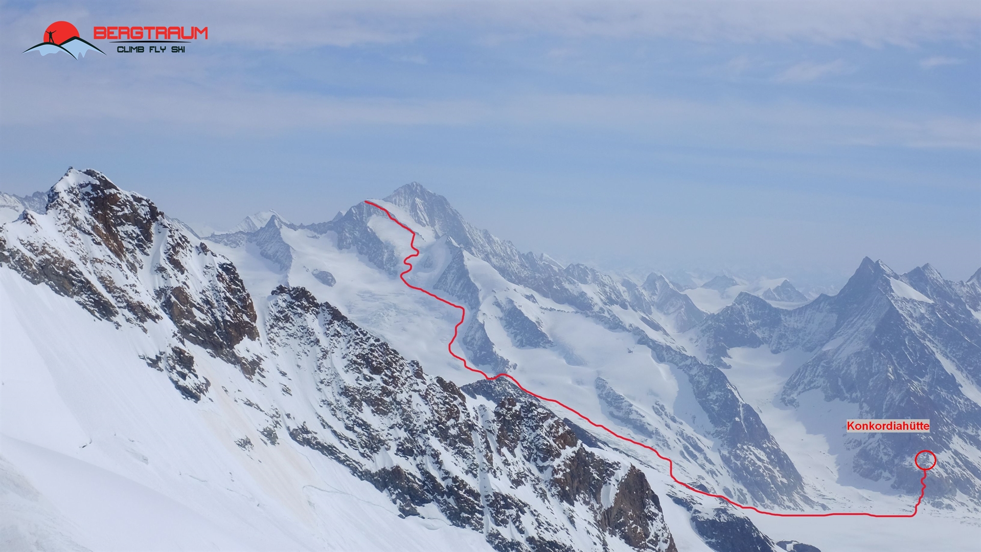 Abstieg: Über die Aufstiegsroute. Vom Skidepot mehrere schöne Abfahrtsmöglichkeiten Richtung W zum Ewigschneefäld runter. Von dort entlang der Aufstiegsroute zur Konkordiahütte zurück.