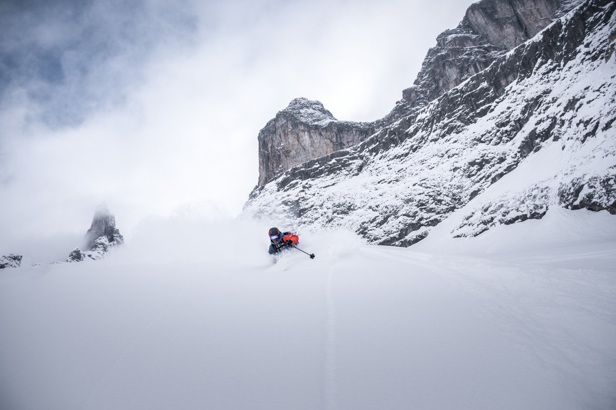Mit dem Anstieg durch das Sporertobel sind sichere Verhältnisse Vorraussetzung. Der letzte Aufstieg auf das Plateau (2650m) ist mit ca. 40 Grad sehr steil.