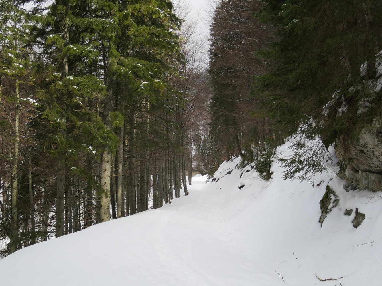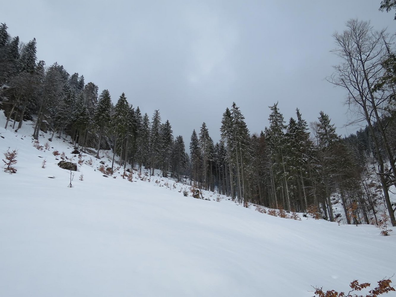 Abfahrt: Wie Aufstieg, vorsicht auf Lawnen zwischen Rücken und Forststraße und unter der Forststraße.