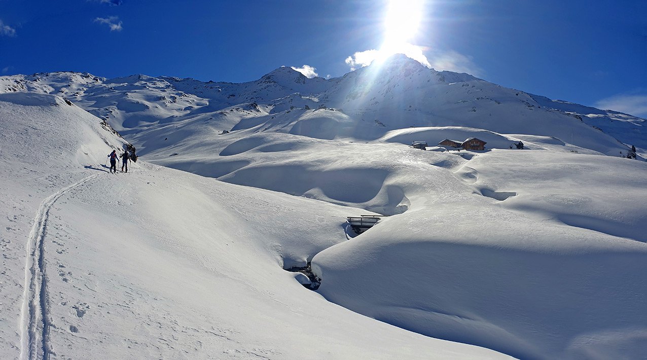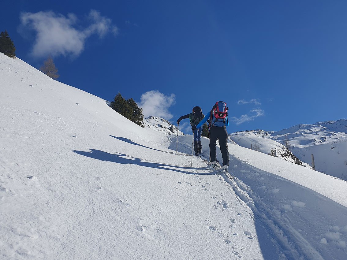Je nach Routenwahl einige kurze, steilere Stufen - auf sichere Schneeverhältnisse ist zu achten.