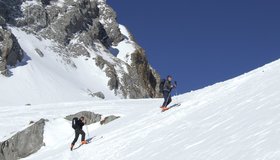 Großartige Skitour mit Doppelgipfelmöglichkeit im Johnsbachtal. Die Skitour folgt anfangs Forststraßen und führt dann durch das steile Gsuchkar hinauf zum Gipfelgrat. Hier wartet links die Stadelfeldschneid und rechts die Gsuchmauer. Eine der Top Skitouren im Johnsbachtal.. Vom Sattel zwischen Stadelfeldschneid und Gsuchmauer aus (ca. 100 hm unter dem Gipfel gelegen) eröffnet sich ein grandioser Gipfelblick auf Festkogel, Ödstein und Hochtor! Dass sich diese schöne Skitour bereits landein, landaus herumgesprochen hat, verwundert nicht. Die Tour ist sehr beliebt und an schönen Tagen oft überlaufen.