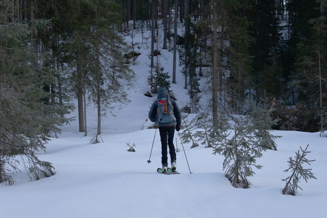 Die Tour macht nur bei sehr viel Schnee Sinn, denn nur dann ist der Stauden- und Latschengürtel gut zu begehen. Früher Aufbruch ist anzuraten, das Kar ist schnell in der Sonne. Westrinne oben: Die Rinne bekommt wegen ihrer leicht östlichen Ausrichtung als erster die Sonne ab - man sollte sehr früh dran sein.
