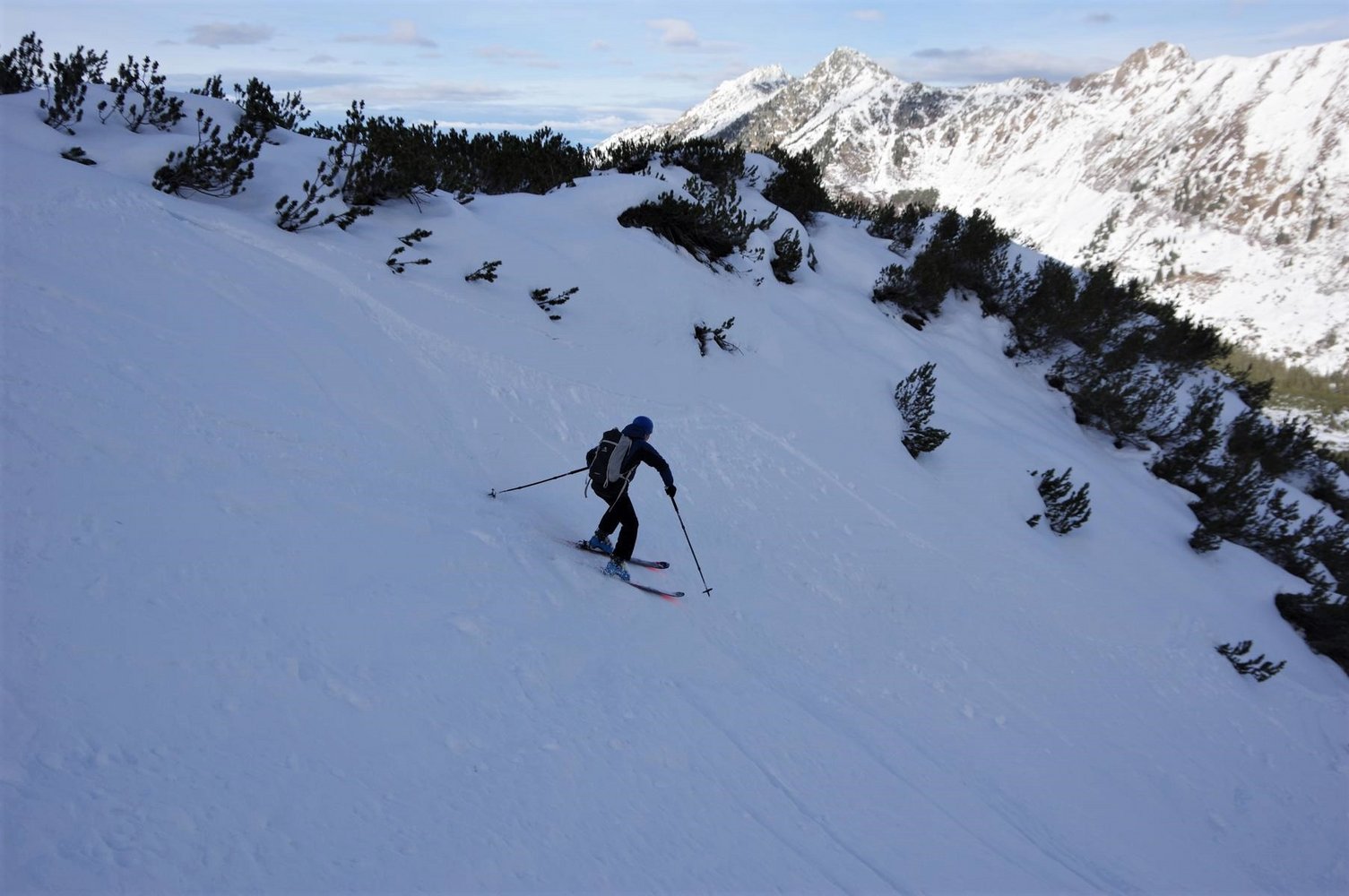 Entweder (-1Std.) mit dem Gläserbodenlift oder entlang der Skipiste oder das freie Gelände auf den Gläserboden hinauf und von der Bergstation ostwärts in einen Sattel von dem man steil in den Plientensattel hinunter fährt. Hier auffellen und dem Sommerweg/Grat hinauf zum Hintergullingspitz folgen. Abfahrt nach Norden ins Plientental bis zu einem flachen Geländerücken. Hier auffellen und linkshalted Richtung kleiner Rotbühel und nach dem Gipfel - Achtung steil und auch Lawinengefährdet - zum Rotbühel-Lift aufsteigen. Am besten bleibt man auf dem kleinen Rücken. Von der Berstation über die Skipiste retour zur Planneralm.