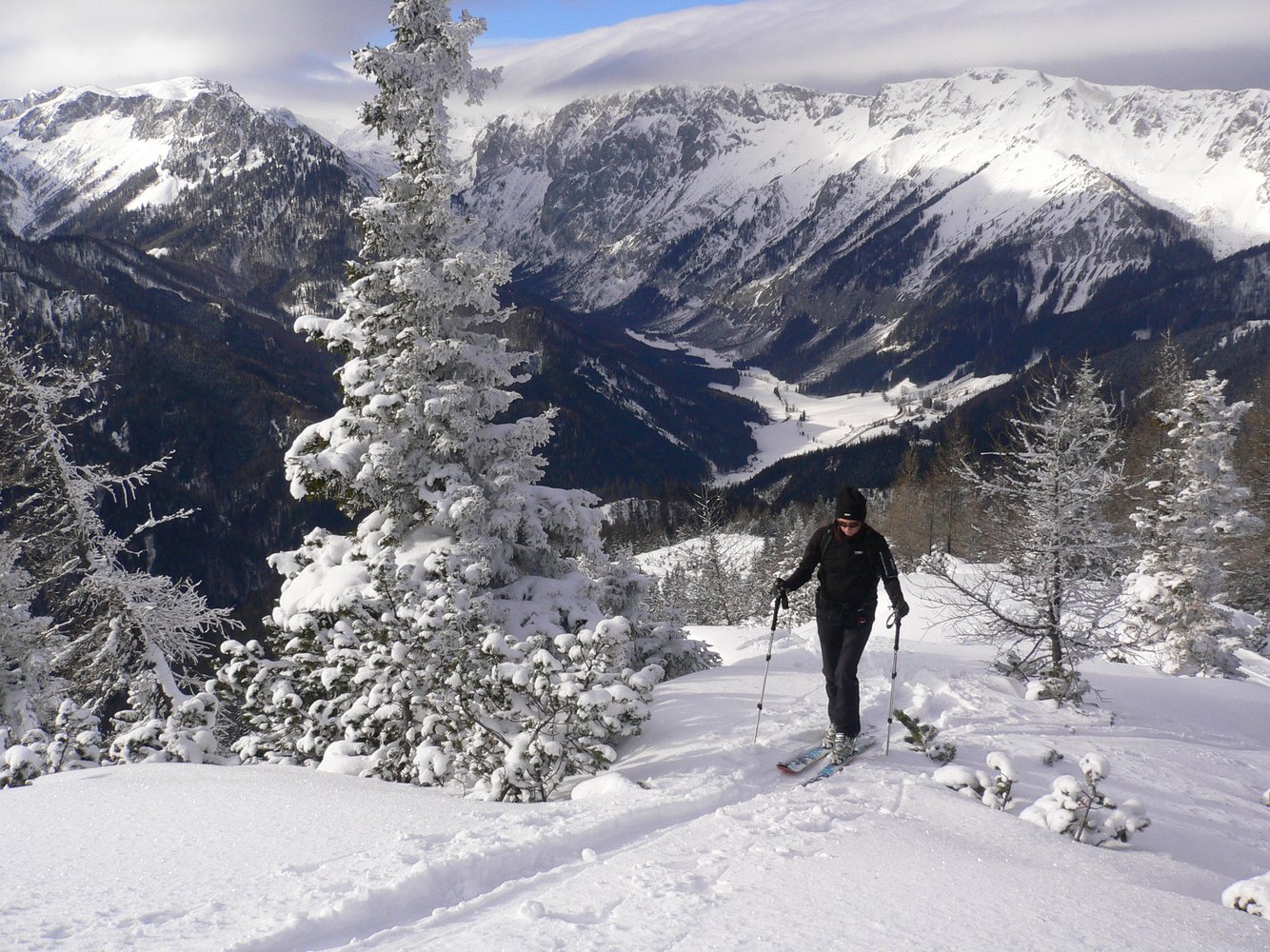 Am lohnendsten ist der Aufstieg über das Karlkögerl mit Abfahrt über die Göriacher Alm. Bei vernünftiger Spurwahl kaum lawinengefährdet.