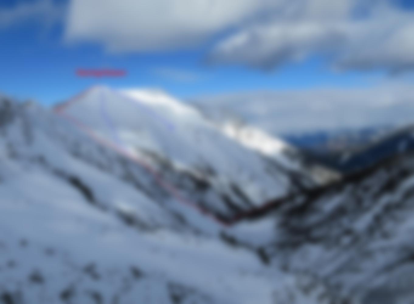 Abfahrt wie Aufstieg oder vom Gipfel direkt in den steilen Südhang einfahren (sehr hohe Lawinengefahr, dh. nur bei sichersten Verhältnissen).