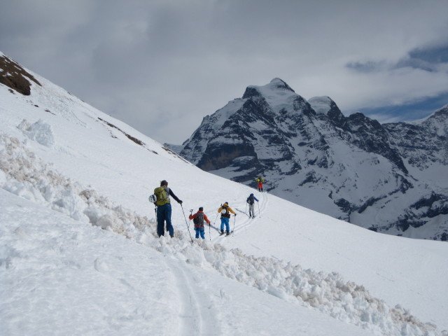Die Skitour auf das Hundshorn (auch Hundshore) ist dabei besonders beliebt. Das liegt einerseits am tollen Blick auf Eiger, Mönch und Jungfrau und andererseits an den unglaublich breiten, mittelsteilen Hängen östlich des Hundshorns. Der flachere Teil oberhalb der Rotstockhütte bietet aufgrund der zahlreichen Geländestufen viele abwechslungsreiche Varianten. Aufgrund einer heiklen Traversierung (Absturzgefahr!) und dem steilen Gipfelaufstieg darf die Tour trotz des "Faulpelz-Charakters" keinesfalls unterschätzt werden.