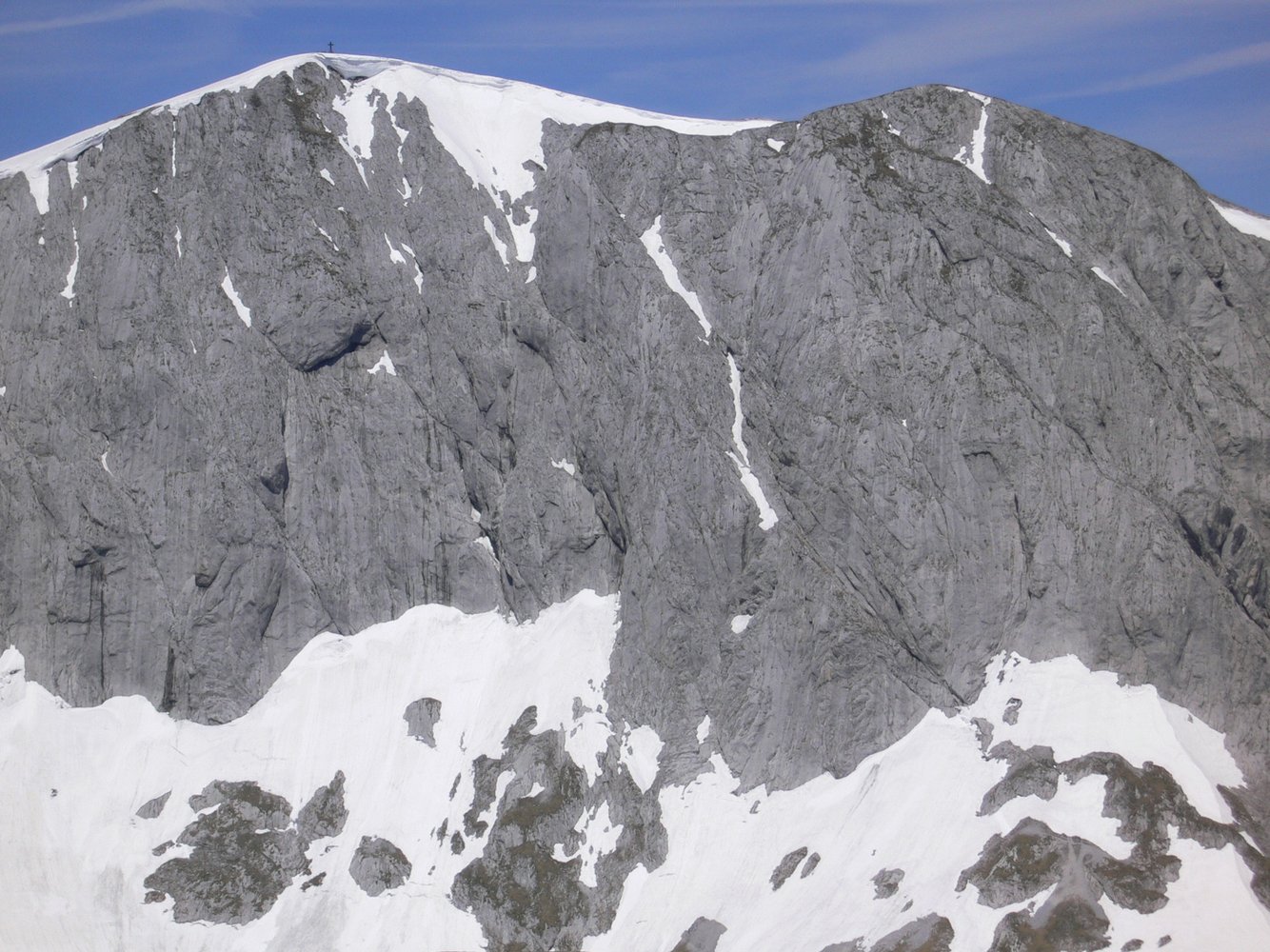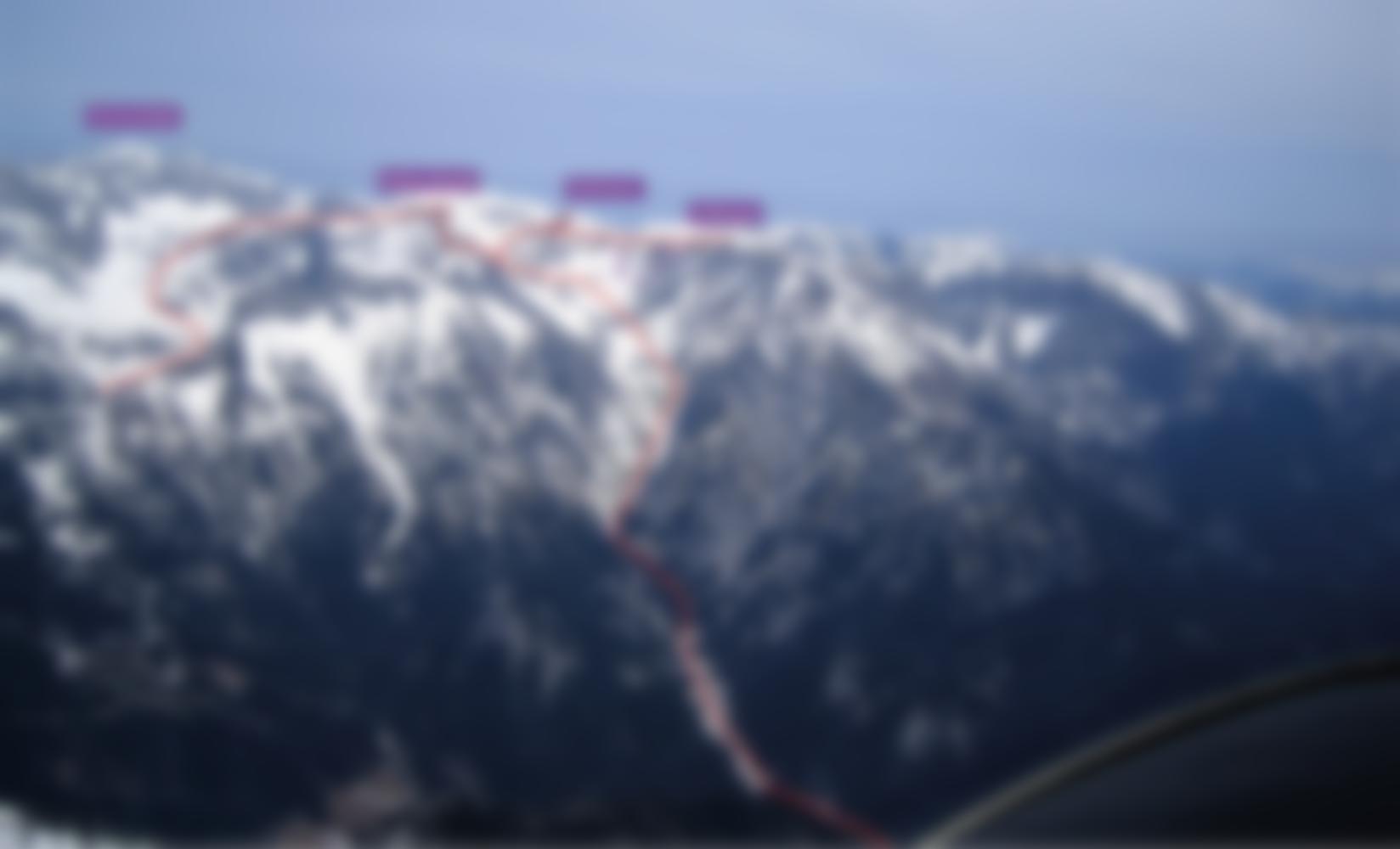 Variante (auf Karte blau eingezeichnet): Die kurze aber sehr steile Südflanke des Gipfels mit anschließendem Steilhang in die Karlböden ist bei sicheren Verhältnissen sehr empfehlenswert.